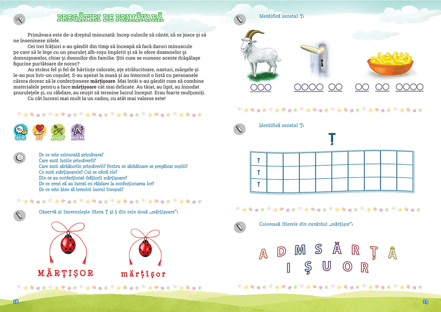 Volumul 2 - Tripleții sunt deja mai mari. știu foarte multe litere, știu să numere, ba chiar să socotească! Aventura clasei pregătitoare continuă: vei călători la Polul Nord și te vei întâlni cu cel mai talentat urs polar, vei cunoaște un șarpe devorator de silabe,o vrăjitoare simpatică, dar foarte sâcâitoare. Îl vei vedea chiar și pe bătrânul Timp, un domn cu ceas de buzunar și cu multe amintiri. Te vei distra colorând și decupând, vei fi creatorul propriei tale povești! și, nu uita, totul se învață mai cu spor cântând!