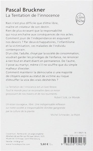 Rien n’est plus difficile que d’être libre, maître et créateur de son destin. Rien de plus écrasant que la responsabilité qui nous enchaîne aux conséquences de nos actes. Comment jouir de l’indépendance en esquivant nos devoirs ? Par deux échappatoires, l’infantilisme et la victimisation, ces maladies de l’individu contemporain.