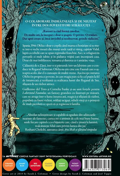 Guillermo del Toro și Cornelia Funke și-au unit forțele pentru Labirintul faunului, un fantasy grandios cu ilustrații pe măsură, care ne atrage într-o lume întunecată, magică și sfâșiată de război, populată cu fauni vicleni, soldați ucigași, rebeli viteji și o prințesă de mult pierdută ce speră să-și regăsească familia.