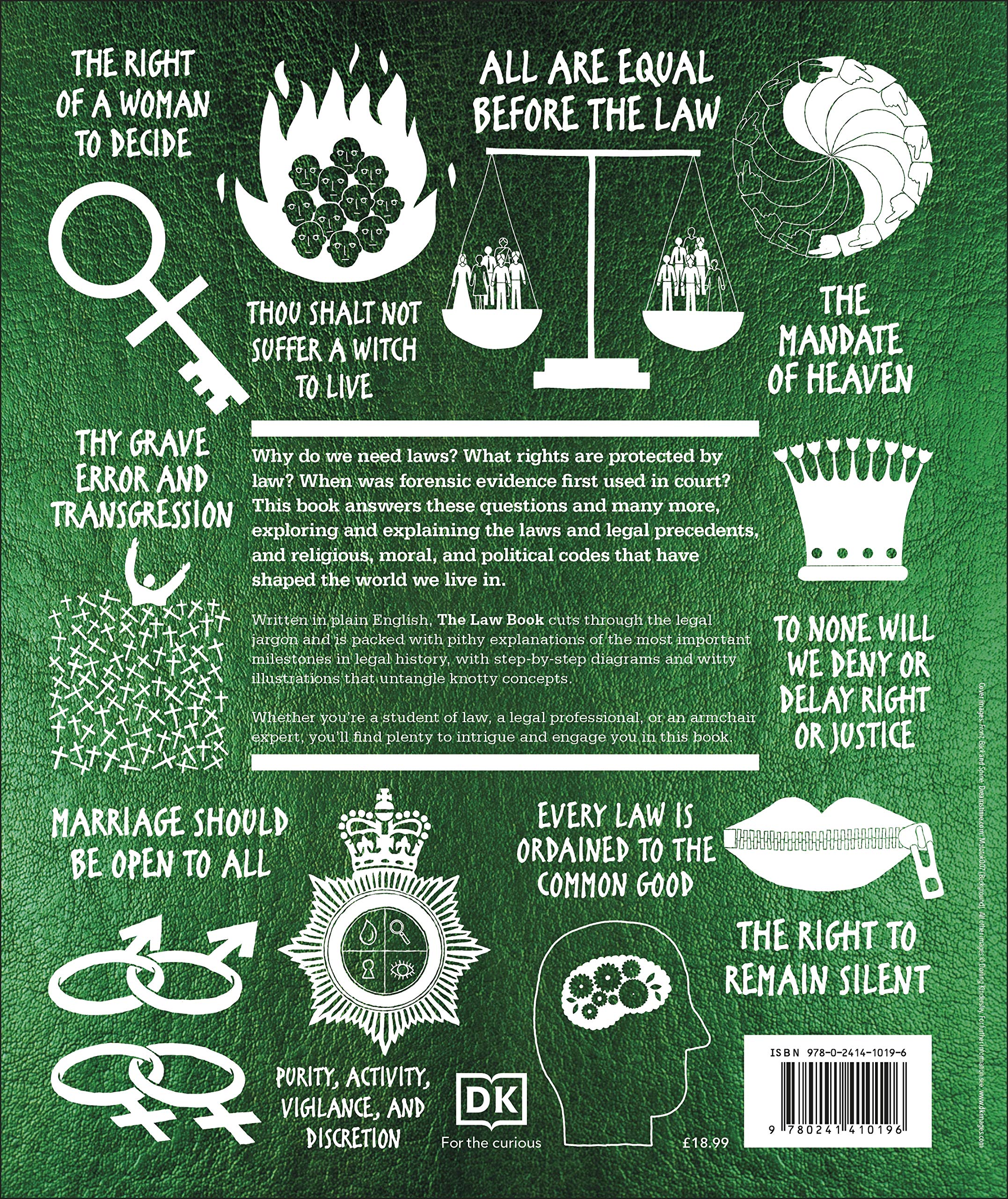 From the earliest laws, such as the Code of Hammurabi, through groundbreaking legislation including Magna Carta and the Abolition of the Slave Trade Act, The Law Book offers an engaging overview of legal history across the world all the way into the 21st century with copyright in the digital age, same-sex marriage, and the "right to be forgotten". Covering the fight for universal suffrage and workers' rights, and the establishment of international legal bodies like INTERPOL and the European Court of Justice, The Law Book explains the stories behind each milestone development.