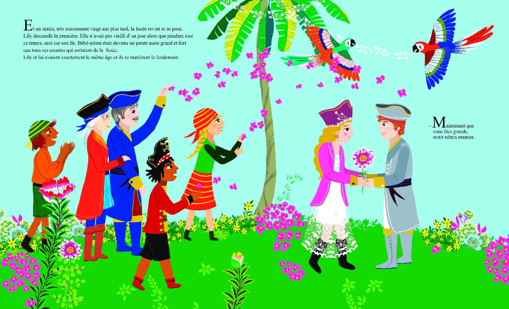 "Sur son île, tout le monde le surnommait Bébé-pirate. Il n'aimait pas beaucoup ça, surtout qu'il n'était plus un bébé depuis longtemps, mais comme il était né le dernier, ses cousins grandissaient en même temps que lui, et il restait toujours le plus petit." Le petit pirate rêve de grandir, il a beau partir en navette spatiale loin des siens pour défier le temps et vieillir plus vite, rien n'y fait… Un magnifique conte de Michel Bussi qui est une réflexion sur le temps qui passe et les liens indéfectibles de l'amour familial.