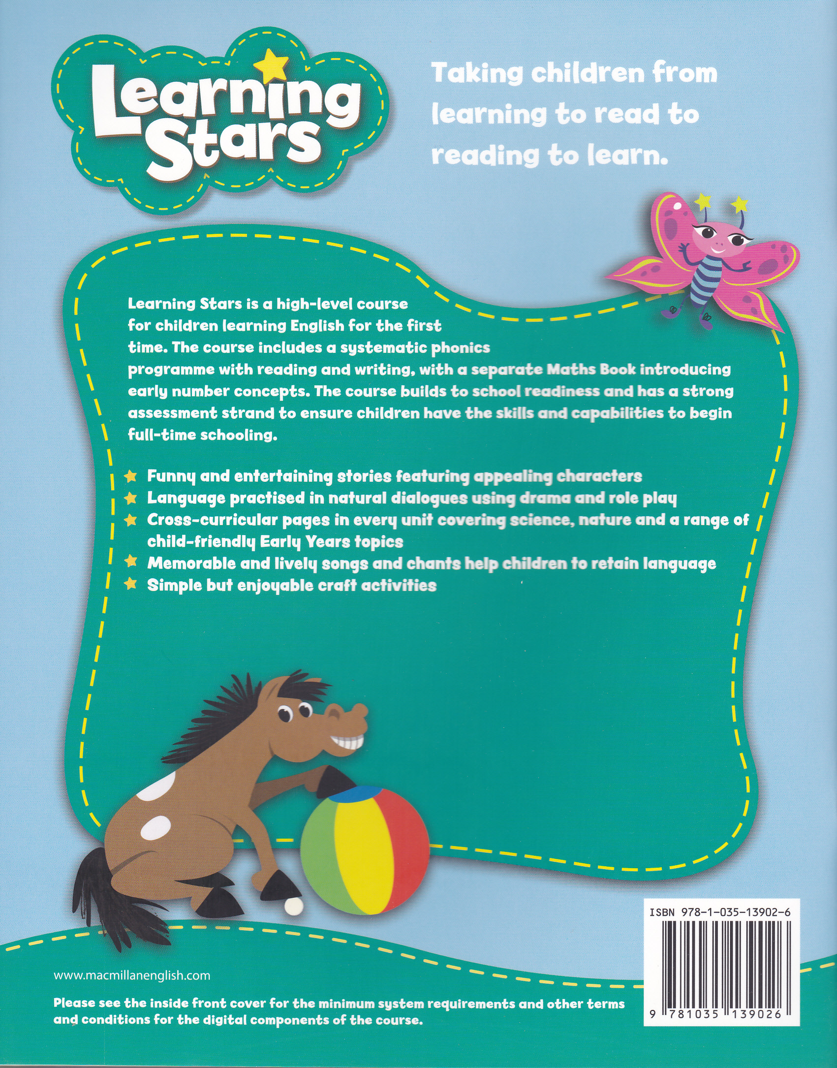 Learning Stars is a course for preschoolers and primary school students who are starting to learn English. The teaching and methodological kit is designed with an emphasis on developing reading, writing and counting skills in English for children whose native alphabet is not the Latin alphabet. Speaking lessons are based on storylines, skits and songs that make the process of learning English lively and interesting. The textbook comes with an access code to the student's digital components.