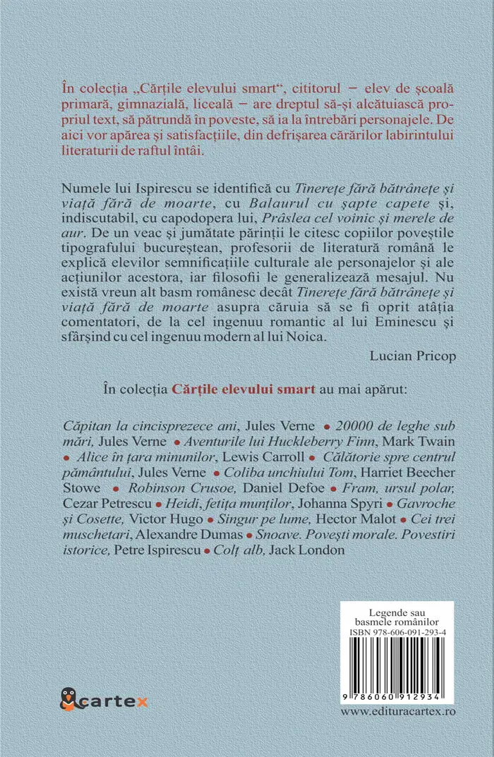 Cuprinsul acestui volum a fost dictat de prezenta basmelor lui Ispirescu în bibliografia scolara de ciclu primar si gimnazial. […}