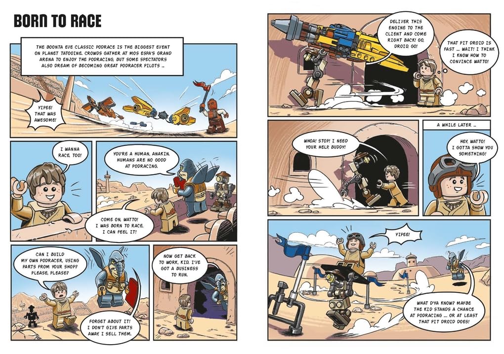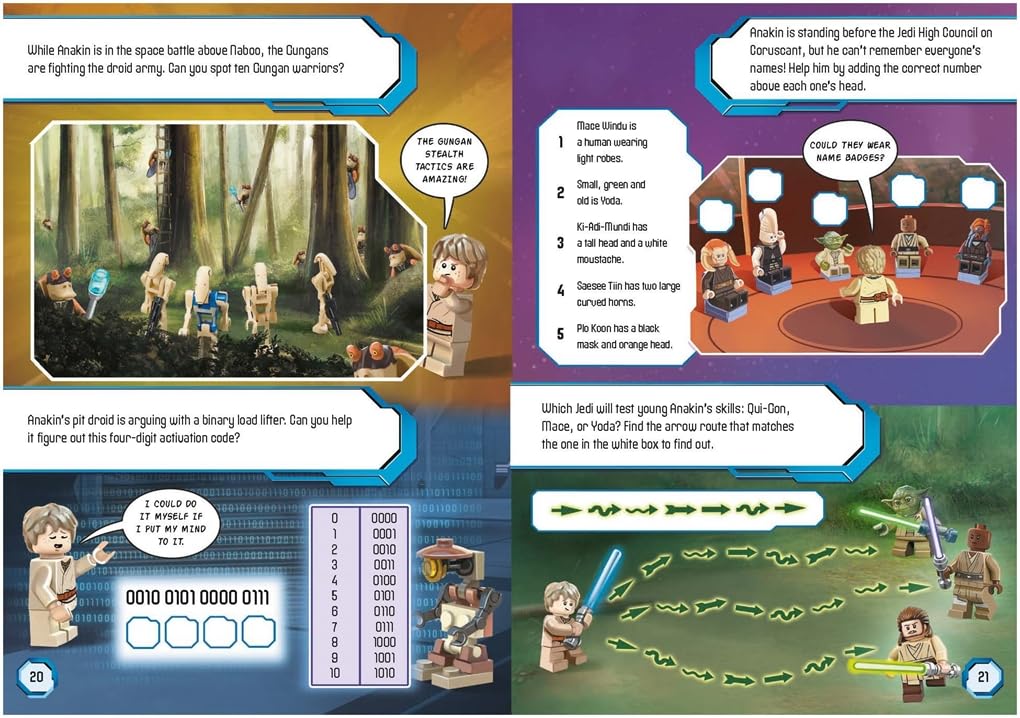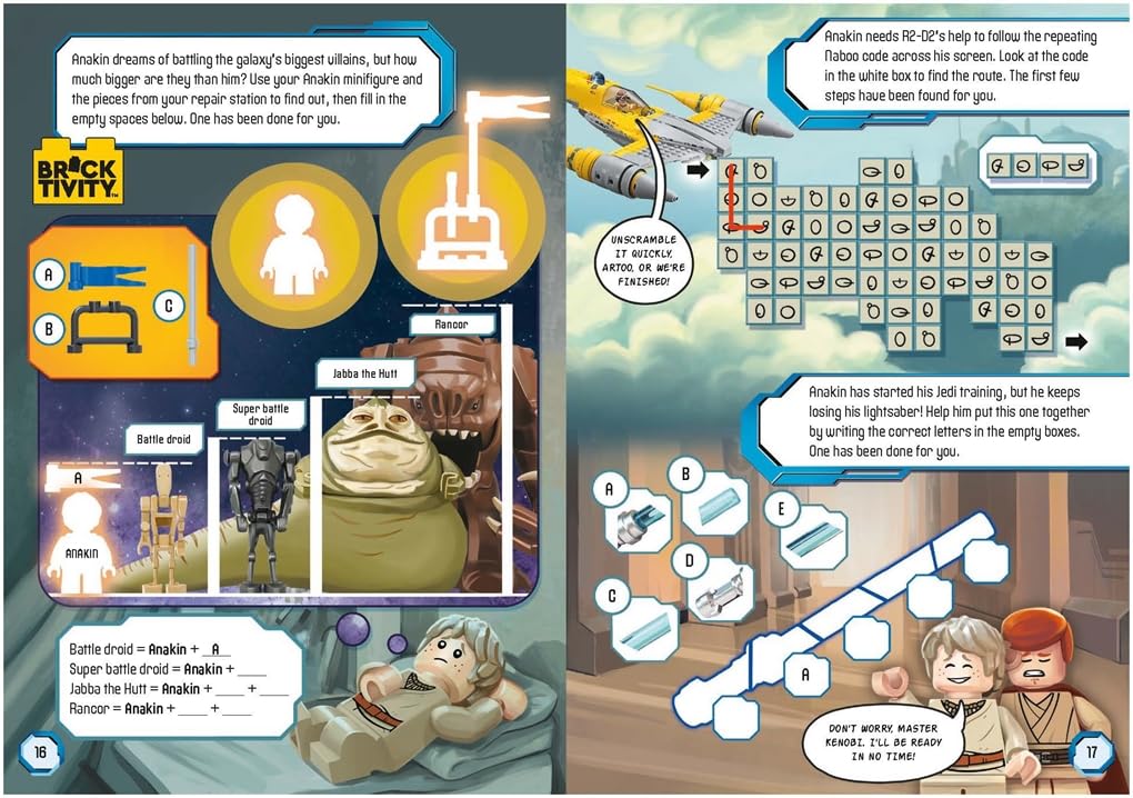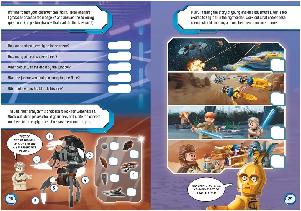 Use the LEGO® pieces provided to build your Anakin minifigure, plus his pit droid and repair station, before playing along with the fun comics and puzzles.