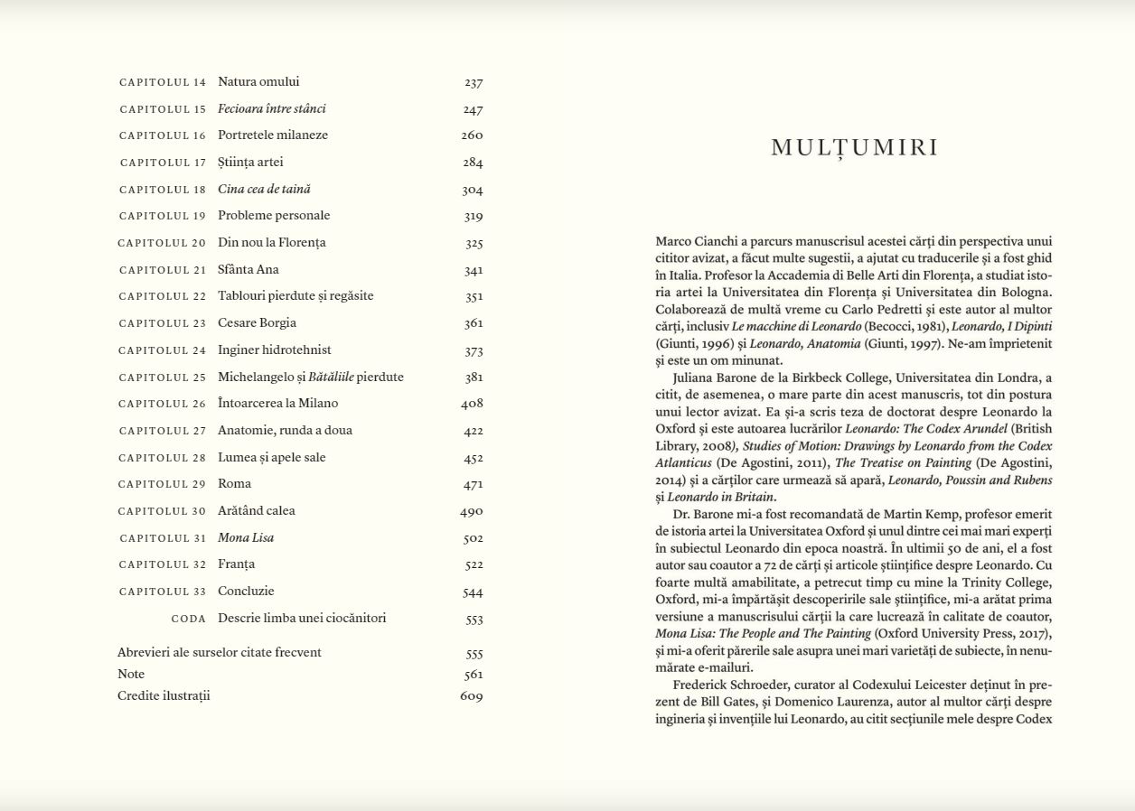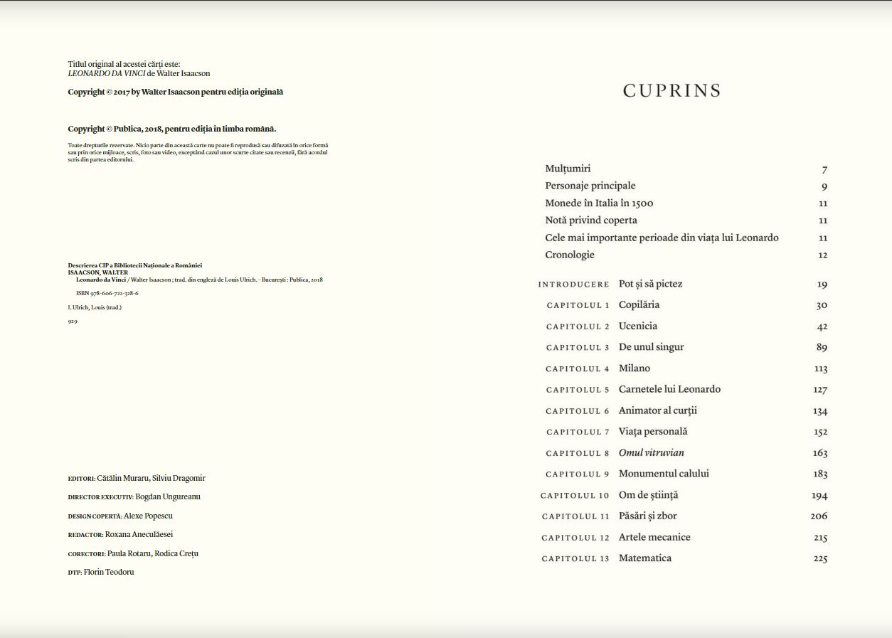 A citi această biografie magnifică a lui Leonardo da Vinci înseamnă a face o călătorie prin viața și opera uneia dintre cele mai extraordinare ființe umane din toate timpurile, în compania celui mai șarmant, informat și intuitiv ghid imaginabil. Walter Isaacson este deopotrivă un adevărat savant și un scriitor fascinant. Și ce bogăție de învățăminte în aceste pagini. — David McCullough
