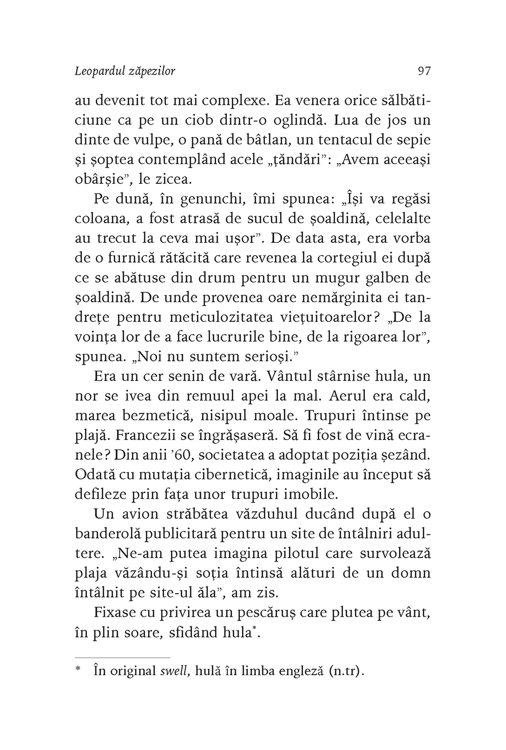 „Să aștepți la minus 30 de grade, fără să scoți un sunet, incerta apariție a unui animal ce se ascunde pe platourile Tibetului – astfel se poate rezuma trama acestei cărți care amintește de pînda căpitanului Ahab din Moby Dick.” (Le Monde)