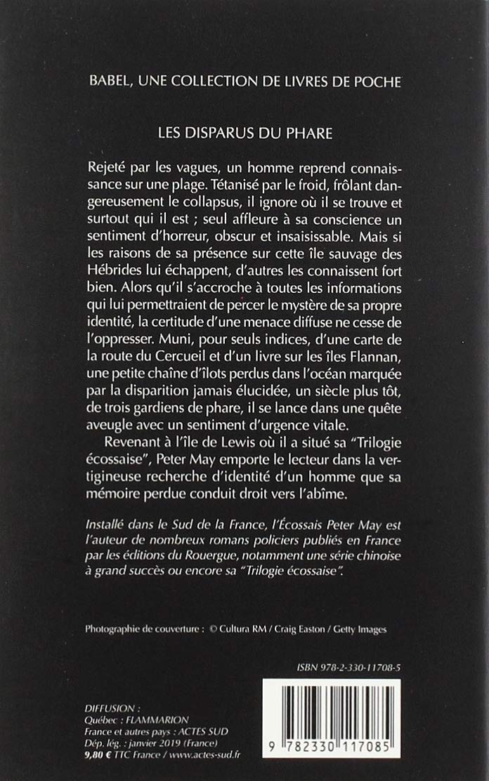 Rejeté par les vagues, un homme reprend connaissance sur une plage. Tétanisé par le froid, frôlant dangereusement le collapsus, il ignore où il se trouve et surtout qui il est ; seul affleure à sa conscience un sentiment d'horreur, obscur et insaisissable. Mais si les raisons de sa présence sur cette île sauvage des Hébrides lui échappent, d'autres les connaissent fort bien. Alors qu'il s'accroche à toutes les informations qui lui permettraient de percer le mystère de sa propre identité, la certitude d'une menace diffuse ne cesse de l'oppresser. Muni, pour seuls indices, d'une carte de la route du Cercueil et vre sur les îles Flannan, une petite chaîne d'îlots perdus dans l'océan marquée par la disparition jamais élucidée, un siècle plus tôt, de trois gardiens de phare, il se lance dans une quête aveugle avec un sentiment d'urgence vitale. Revenant à l'île de Lewis où il a situé sa "Trilogie écossaise", Peter May emporte le lecteur dans la vertigineuse recherche d'identité d'un homme que sa mémoire perdue conduit droit vers l'abîme.