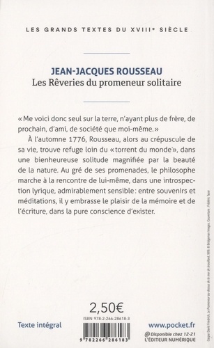 A l'automne 1776, Rousseau, alors au crépuscule de sa vie, trouve refuge loin du "torrent du monde", dans une bienheureuse solitude magnifiée par la beauté de la nature. Au gré de ses promenades, le philosophe marche à la rencontre de lui-même, dans une introspection lyrique, admirablement sensible : entre souvenirs et méditations, il y embrasse le plaisir de la mémoire et de l'écriture, dans la pure conscience d'exister.