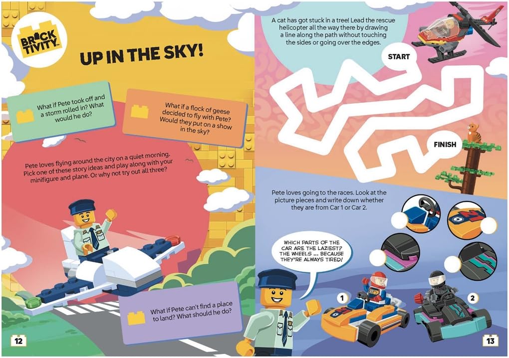In this hilarious Bricktivity book you can use your minifigure and accessories on the page, completing the puzzles and joining in with the imaginative play ideas.