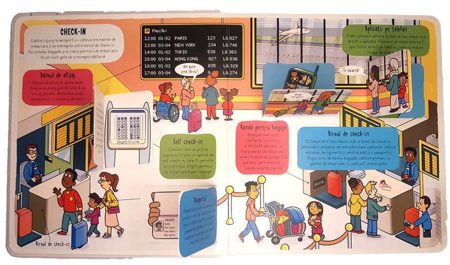 Ridicați clapetele și aflați cum ajung bagajele de la un aeroport la altul, cum sunt urmărite avioanele de controlorii de trafic aerian și cum funcționează un scaner cu raze X.