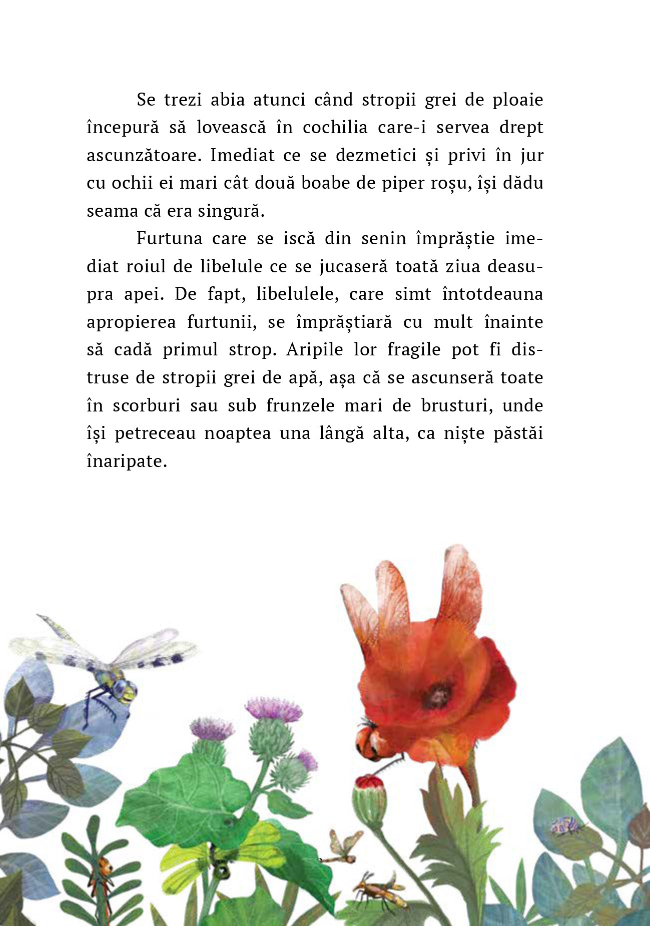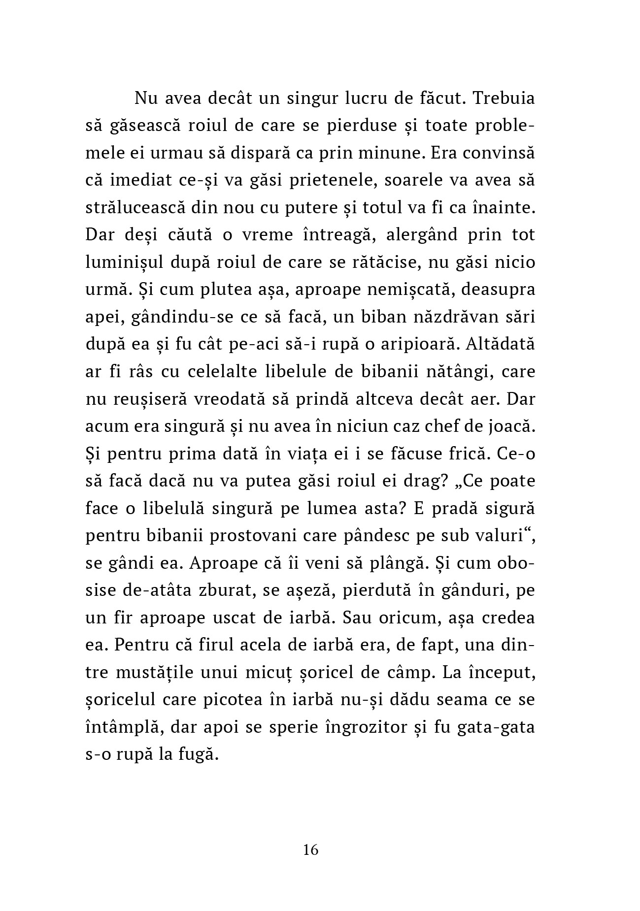 O poveste despre cum prietenia dintre o libelulă micuță, dar curajoasă, și prietenul ei, Clio, un șoricel curios și neastâmpărat, salvează lumea de la o iarnă eternă și aduce pe Pământ primăvara. Aventura lor plină de obstacole, de întâlniri neașteptate și de surprize, care-i poartă printr-o lume stranie și magică, dar căzută sub vraja iernii, este o dovadă că adevăratele miracole trebuie căutate în noi înșine și că orice sfârșit poartă în el semințele unui nou început.