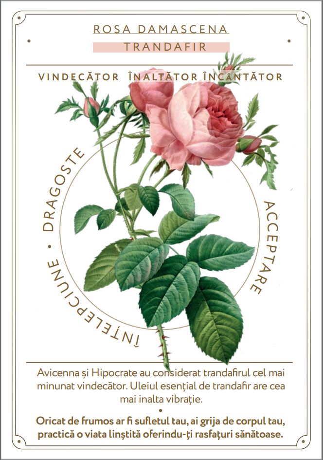 Colecția de 30 de cărți este un instrument pentru aroma terapeuți, parfumieri, psihologi si cei interesați de lumea uleiurilor esențiale. Puteți utiliza cărțile zilnic – fiecare dintre ele conține un mesaj special de ghidare, fapte istorice fascinante, proprietățile fizice și emoționale ale uleiurilor. Le puteți folosi pentru a vă ghida în crearea amestecului de uleiuri esențiale personale, alegând până la 7 cârti. Amestecați uleiurile selectate (câteva picături din fiecare) cu ulei vegetal sau orice alt emulgator.