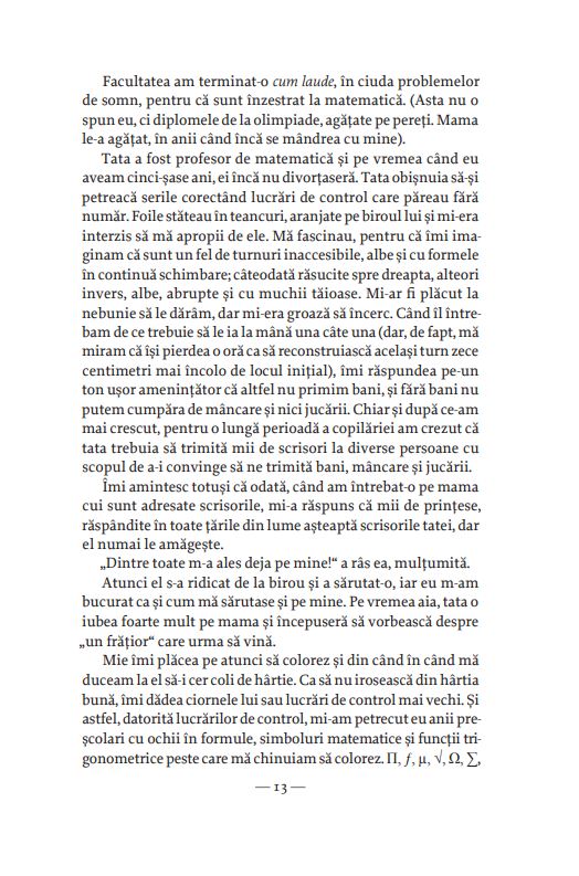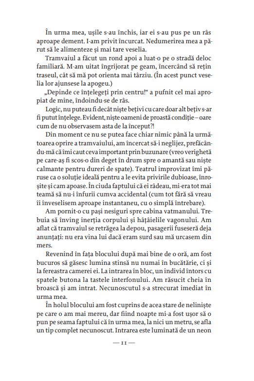 Afectat de o stare de insomnie prelungită, un tânăr pasionat de matematică experimentează stări la limita halucinației, în care câteva elemente revin obsesiv: liftul din blocul în care locuiește împreună cu mama lui, câinii pe care un bizar dresor îi pune să facă salturi sinucigașe, o fată de care se îndrăgostește și care apare în cele mai neașteptate locuri. Când după mai multe încercări reușește să se angajeze, instituția se dovedește una aproape kafkiană, iar colegii de serviciu și șefii par să facă parte dintr-o conspirație secretă. Senzația că nici mașina de dormit pe care începe să o folosească la sfatul medicilor nu e altceva decât o modalitate de a-l controla îl face să se afunde într-o lume a obsesiei și nebuniei. Investigarea realității, survolarea limitei dintre vis, halucinație și ceea ce se petrece cu adevărat sunt de fapt pretexte care camuflează adevăratele frământări ale personajului, legate de traume nedepățite, dezamăgire, obsesia fericirii complete, teama de sfârșit.