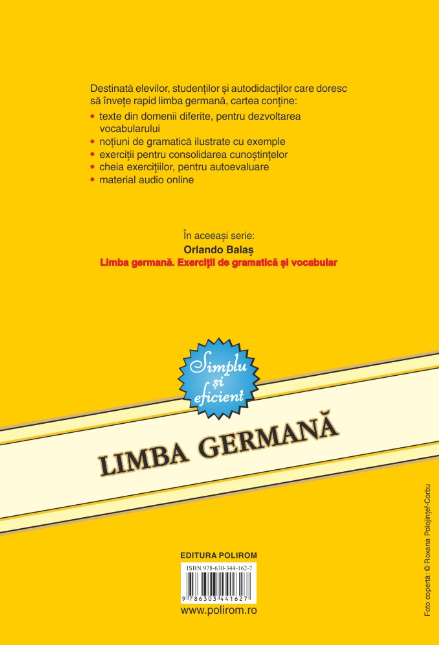 Destinată elevilor, studenților și autodidacților care doresc să învețe rapid limba germană, cartea conține: