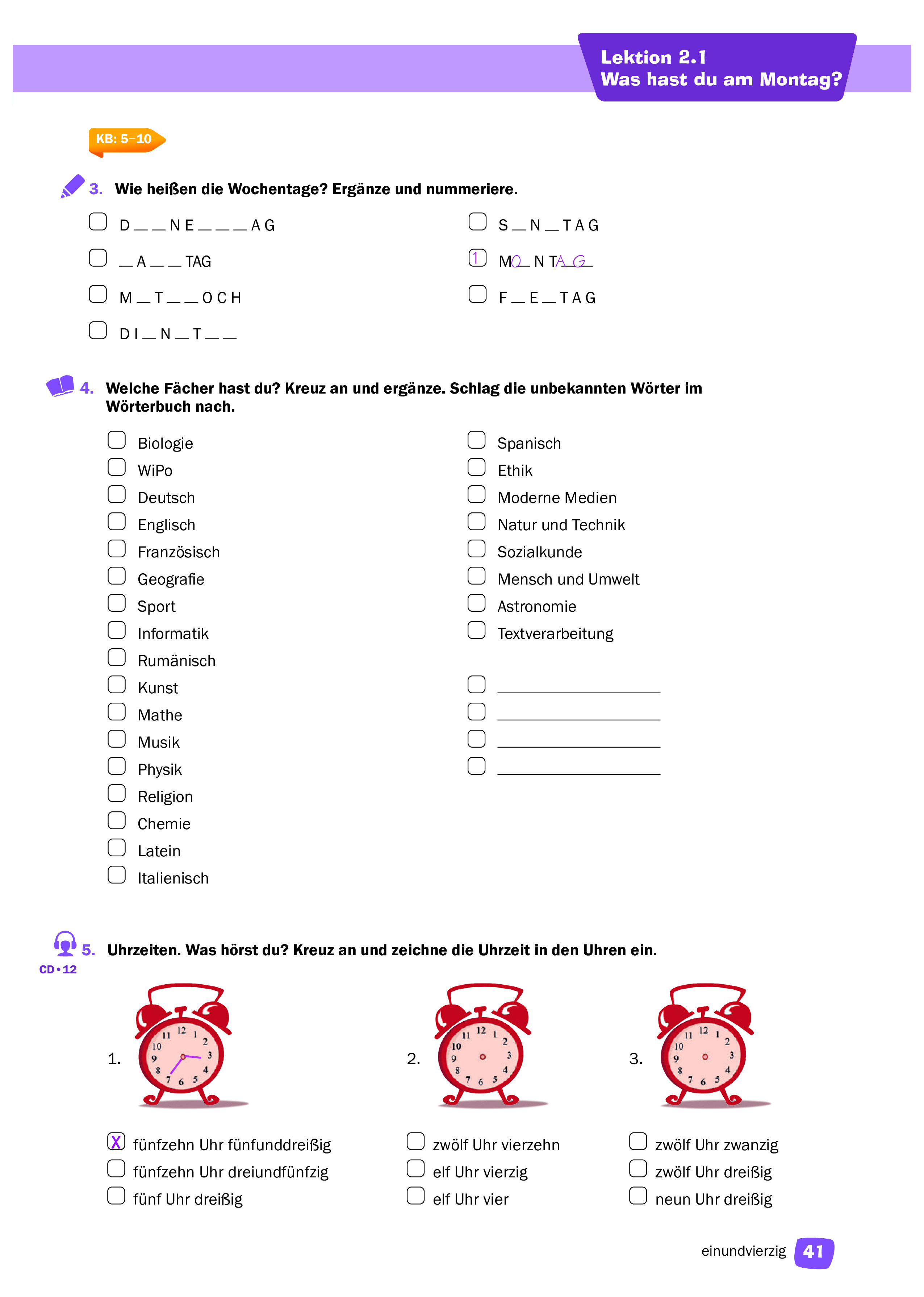Limba moderna germana. Nivel A2.1 - Clasele 5-8 - Caietul elevului