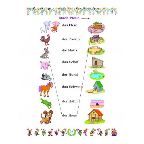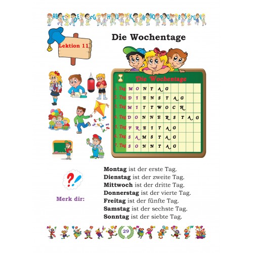 Acest prim nivel contine o serie de lectii cu imagini viu colorate menite sa vina in sprijinul invatarii cuvintelor de baza a limbii germane. Cartea este inceputul invatarii limbii germane pentru orice copil.