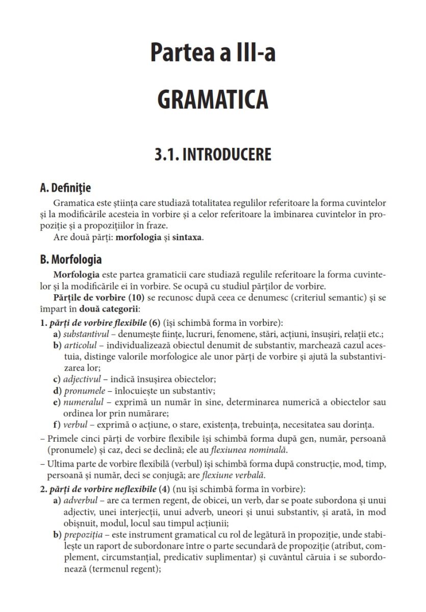• cuprinde noţiuni de: