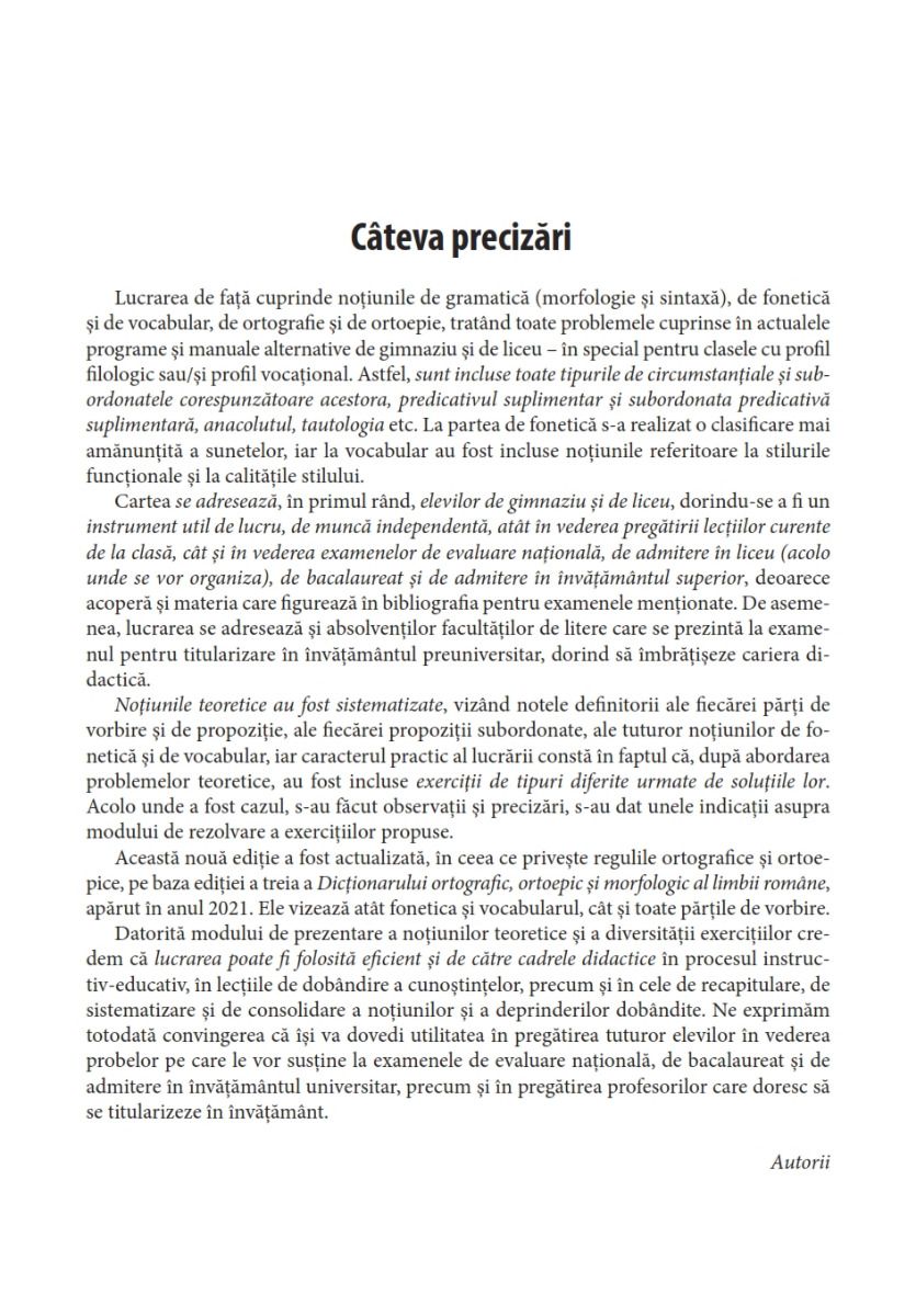 – soluţii ale exerciţiilor, însoţite de explicaţiile necesare