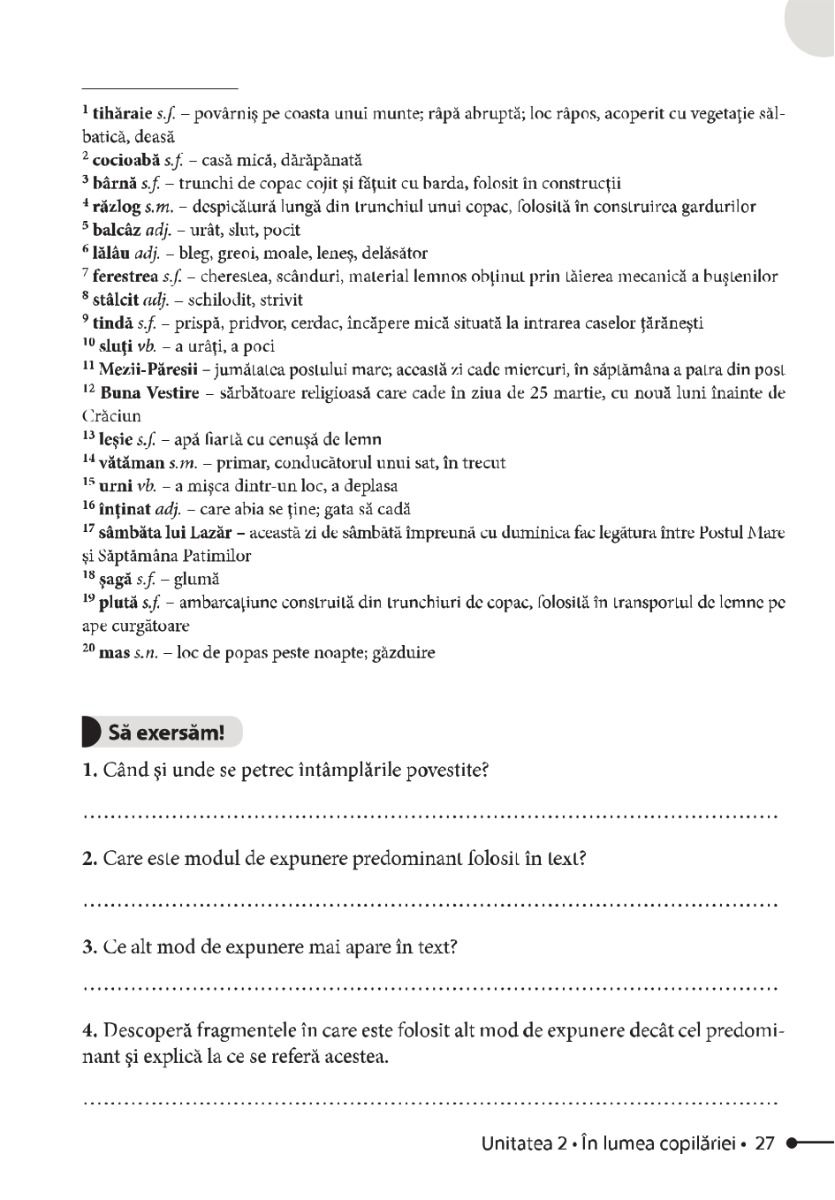 Acest auxiliar este un caiet de exercitii, un instrument de sistematizare si de insusire temeinica si ordonata a notiunilor de limba si literatura romana predate in procesul instructiv-educativ. El poate fi folosit nu numai in fixarea notiunilor dobandite la orele de clasa, ci si in formarea unui stil de munca al copiilor, pentru intelegerea si insusirea corecta a notiunilor respective.