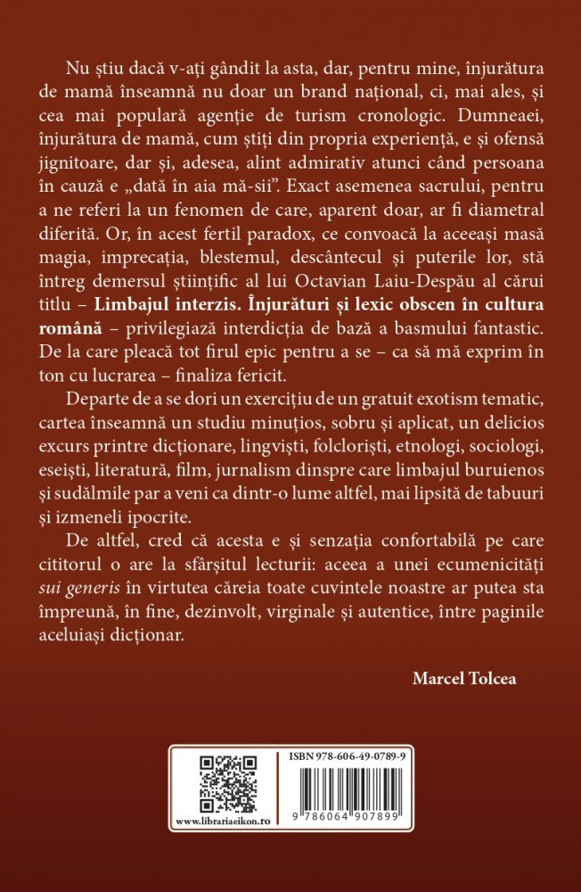 „Poporul român nu folosește expresii blasfematoare pe post de interjecții emotive așa cum se practică la alte neamuri creștine. Pentru exprimarea nemulțumirii, frustrării, iritării, mâniei ele recurg la cuvinte injurioase și insultătoare pe care le alătură numelui lui Dumnezeu, lui Cristos sau Fecioarei Maria. Iată câteva exemple grăitoare: Oh my fucking God!, Jesus fucking Christ! în engleză, Dio merda!, Porco il Cristo!, Porca Madonna! în italiană sau Me cago en Dios! în spaniolă. Astfel de formule nu numai că nu au corespondent în românește, dar sunt inimaginabile pentru vorbitorul obișnuit. Ar fi interesant de cercetat dacă oamenii credincioși înjură mai mult folosind termeni religioși decât cei mai puțin evlavioși sau ateii.”