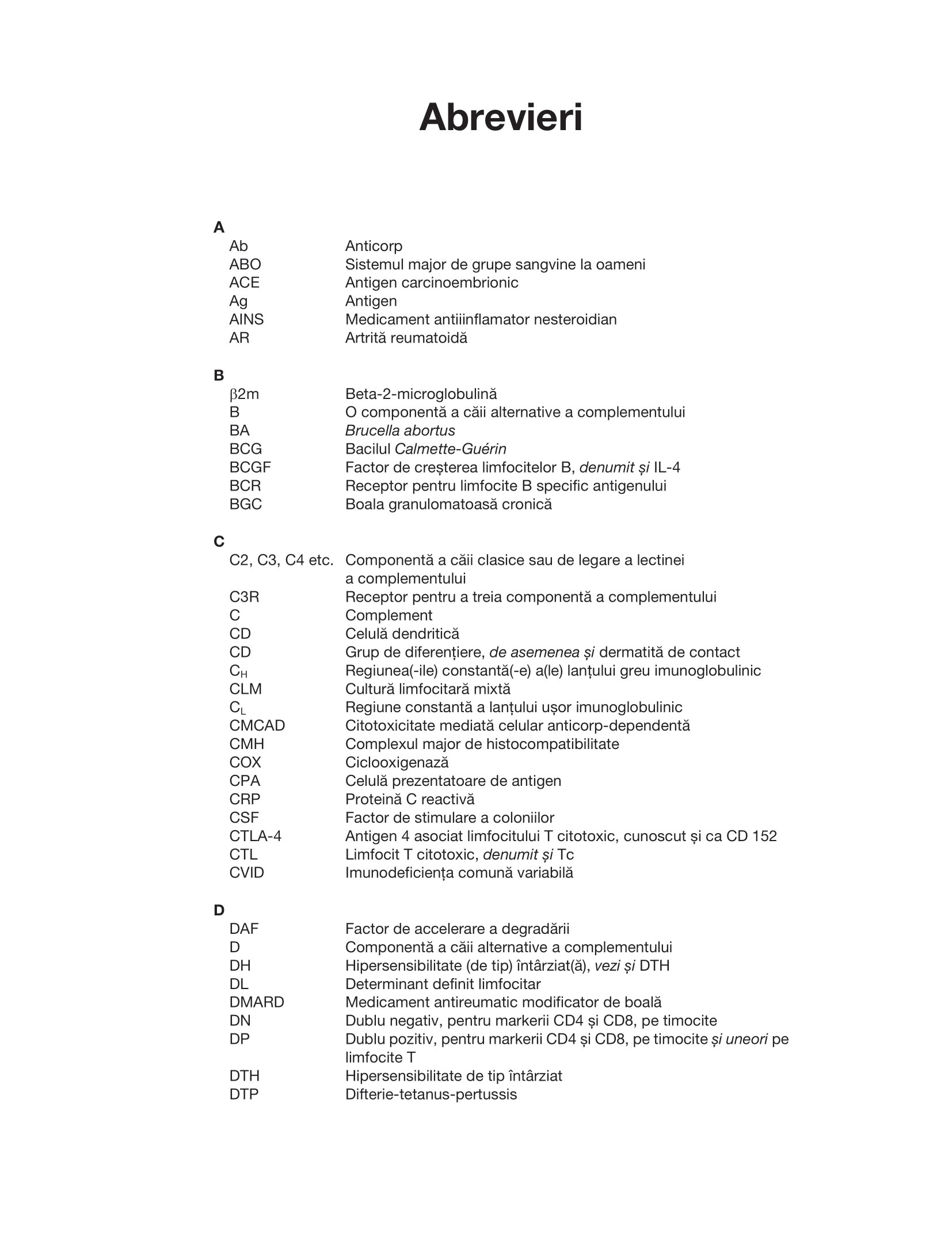 • Cuprinde 4 mari secțiuni: Conceptul recunoașterii sinelui și non-sinelui, Sistemul imunitar înnăscut, Sistemul imunitar adaptativ și Aspecte clinice ale imunității.