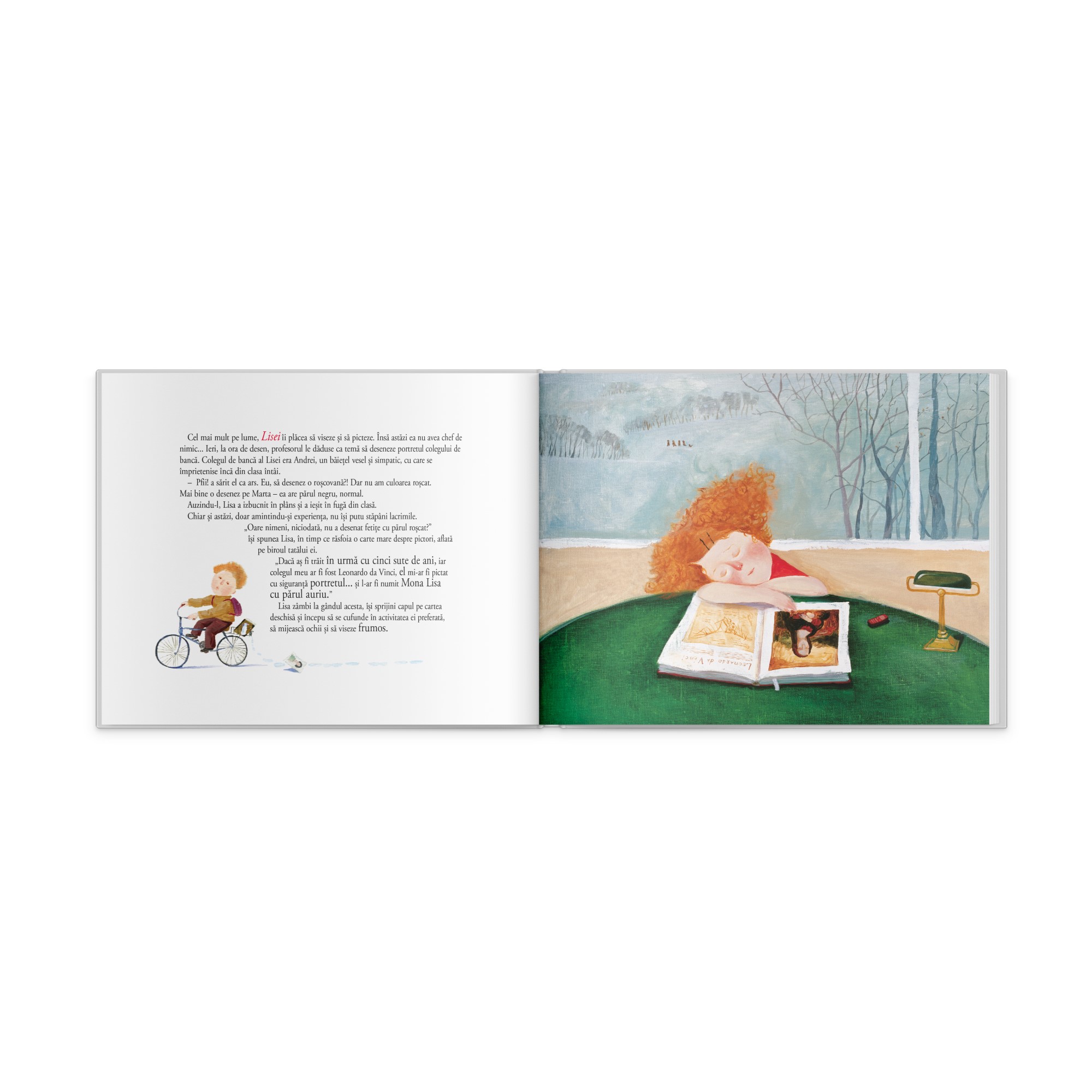 Pe eroină o cunoaștem odată cu rememorarea orei de desen din ziua precedentă, sursă de mare tristețe pentru copilă. Profesorul le dăduse ca temă de lucru desenarea portretului colegului de bancă, iar Andrei refuză să-și deseneze companioana roșcovană și asta o mâhni foarte pe sărmana Lisa. Lacrimile i se rostogoleau pe obraji chiar și astăzi, amintindu-și grozăvenia. Ba mai mult decât atât, copila nu putu să nu se întrebe dacă desenase vreodată cineva fetițe cu părul roșcat. Răsfoind o carte mare despre pictori, Lisa zâmbi totuși la gândul acesta și începu să-și imagineze…