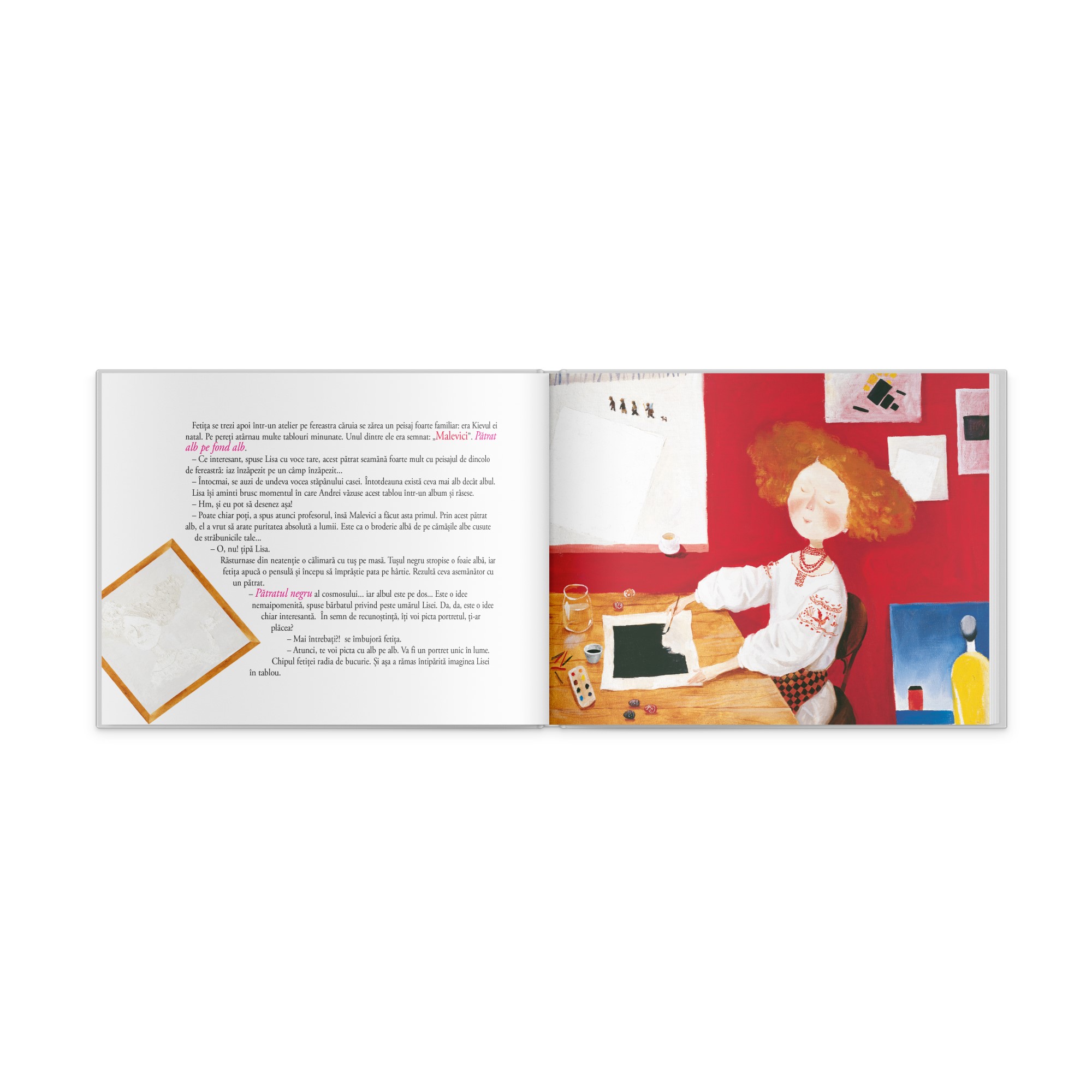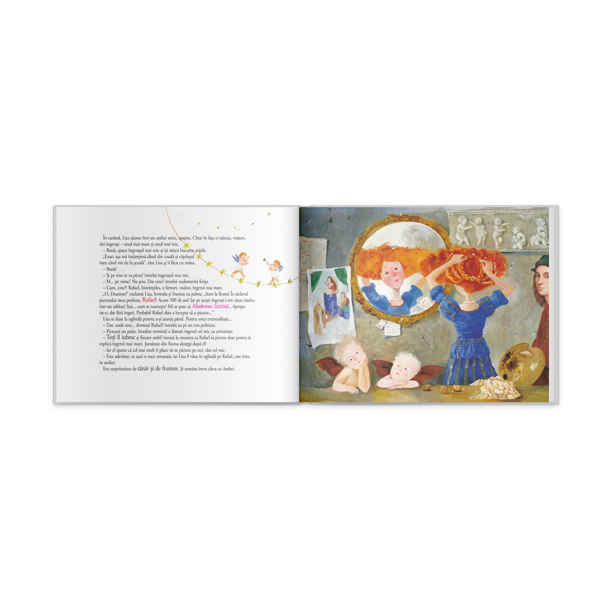 Incursiunea în lumea viselor Lisei ne revelează o serie de întâlniri cu zece dintre cei mai mari pictori ai lumii: Leonardo da Vinci, Vincent Van Gogh, Rafael, Pablo Picasso, Giuseppe Arcimboldo, Kazimir Malevici, Pieter Bruegel, Sandro Botticelli, Salvador Dalí și Gustav Klimt. Fetița nu călătorește programatic sau cronologic, ci aleatoriu ori în funcție de preferințe și cunoștințe, purtată fiind de aripile măiestrite de Leonardo da Vinci.