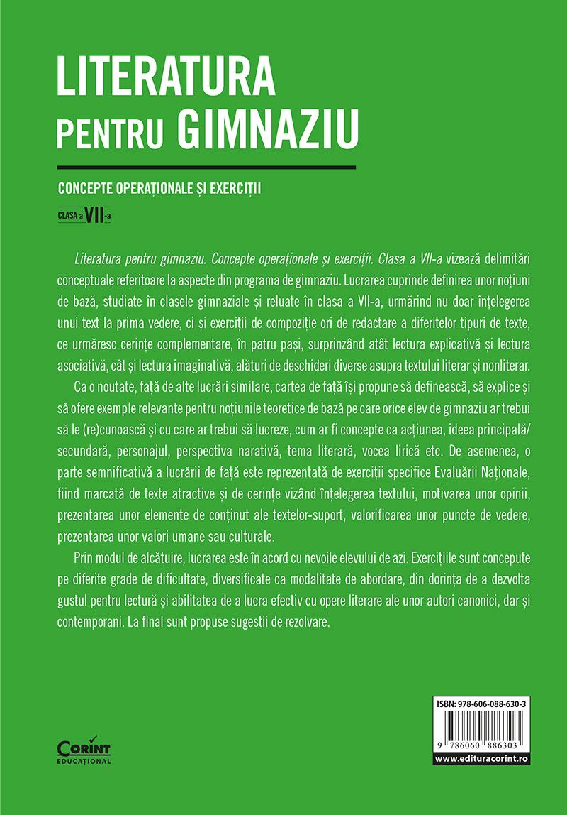 Literatura pentru gimnaziu. Concepte operaționale și exerciții. Clasa a VII-a vizează delimitări conceptuale referitoare la diferite tipuri de text, în acord cu programa școlară pentru gimnaziu.