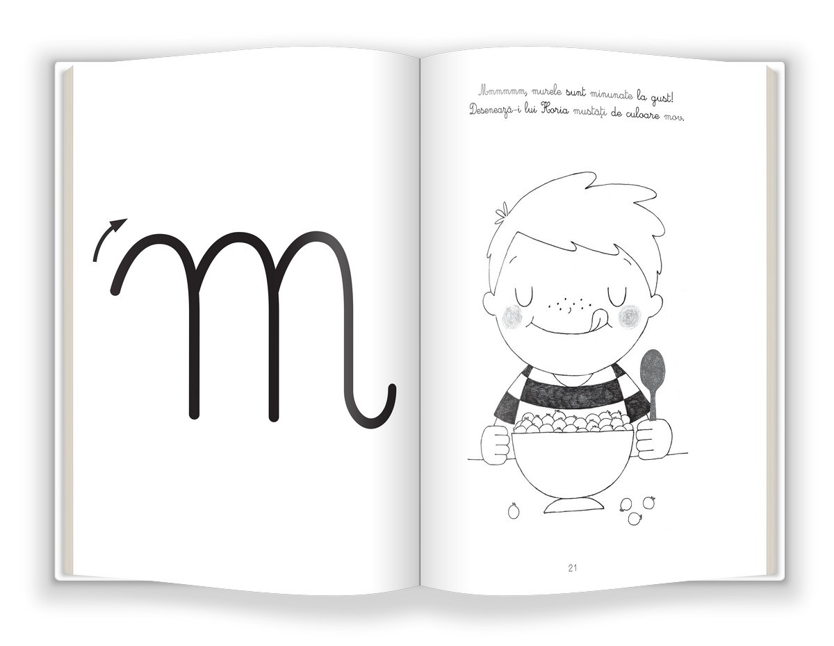 Potrivit în perioada senzitivă a limbajului, caietul familiarizează copilul cu literele alfabetului și sunetele corespondente.