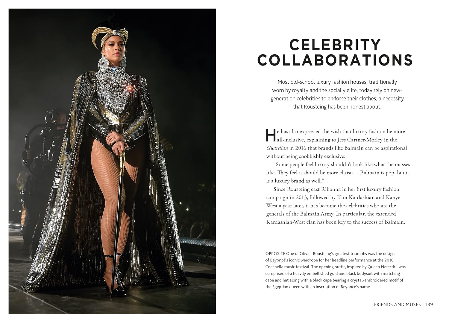 Now, in the twenty-first century, Balmain's ultra-modern look – still with the spirit of Pierre – is worn by the likes of Beyoncé, Kristen Stewart, Kate Moss and Kendall Jenner. Heavily embellished, dazzling detail meets futuristic silhouettes for an instantly recognisable look.