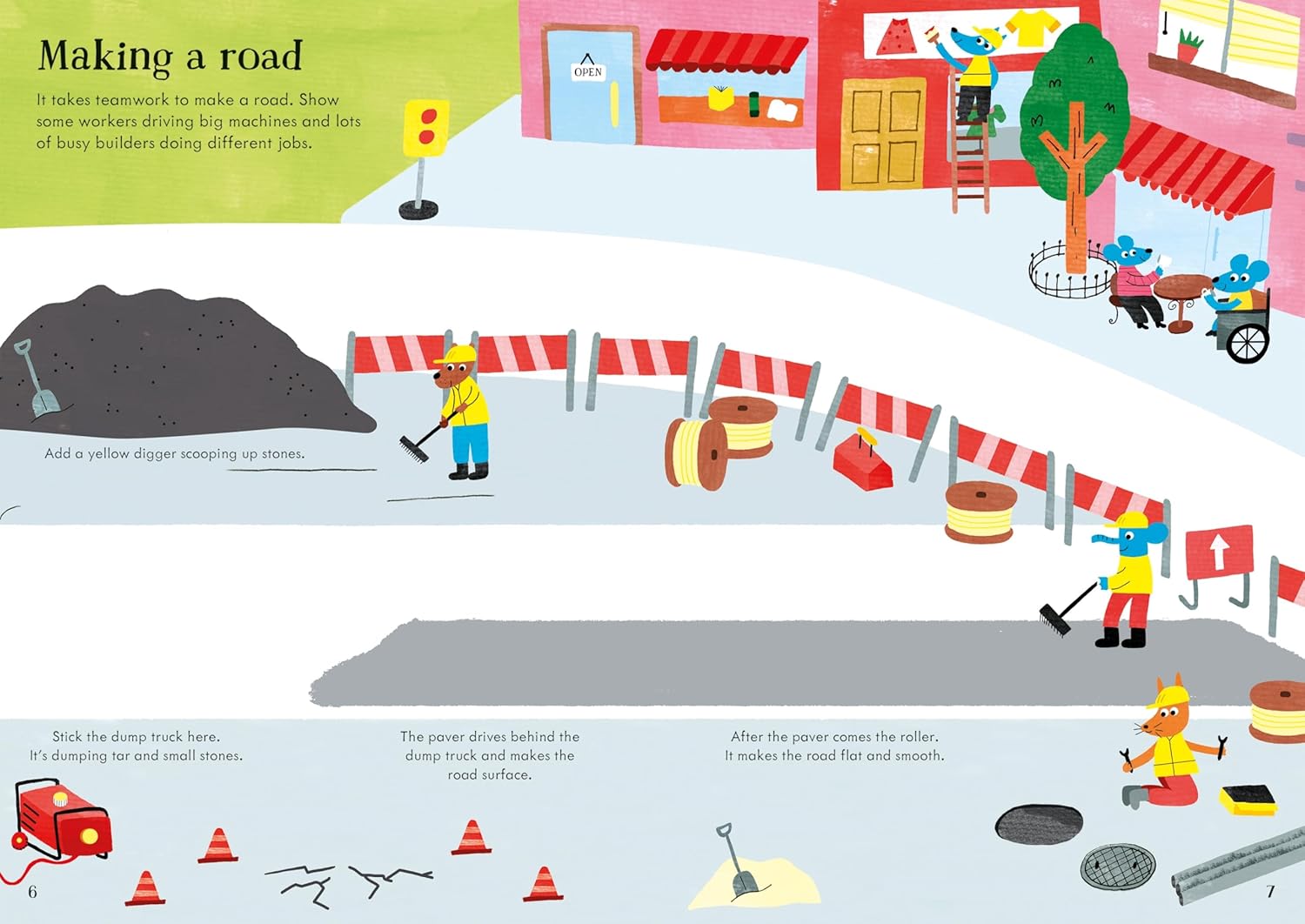 Discover over 170 detailed stickers to bring each busy scene to life with bulldozers, diggers, dump trucks and more.