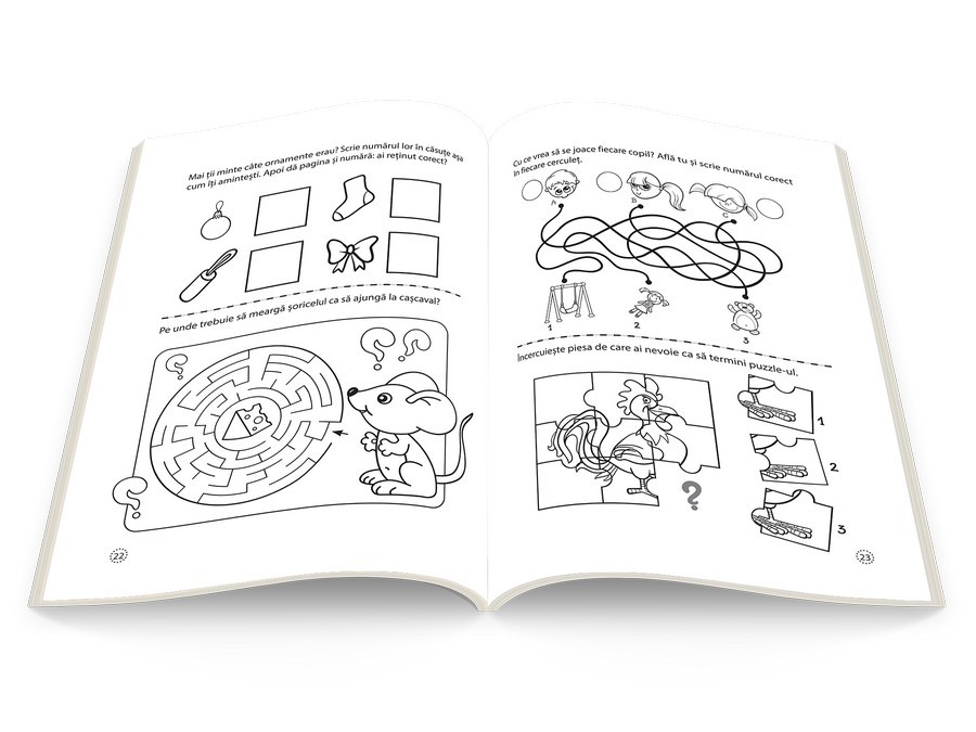 Conține probleme de perspicacitate, precum și activități de dezvoltare a atenției, memoriei și gândirii logice.