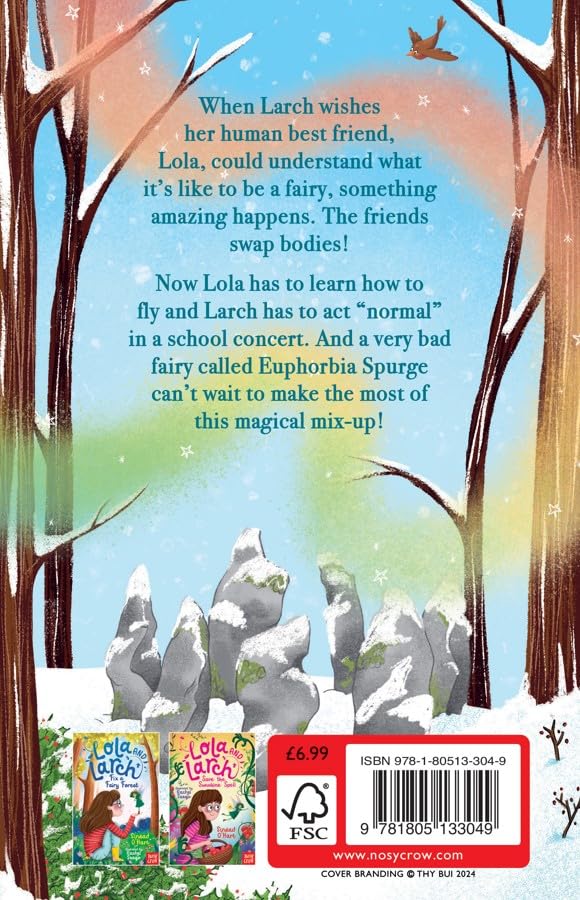 When Larch wishes her human best friend, Lola, could understand what it's like to be a fairy, something amazing happens. The friends swap bodies! Now Lola has to learn how to fly and Larch has to act "normal" in a school concert. And a very bad fairy called Euphorbia Spurge can't wait to make the most of this magical mix-up!