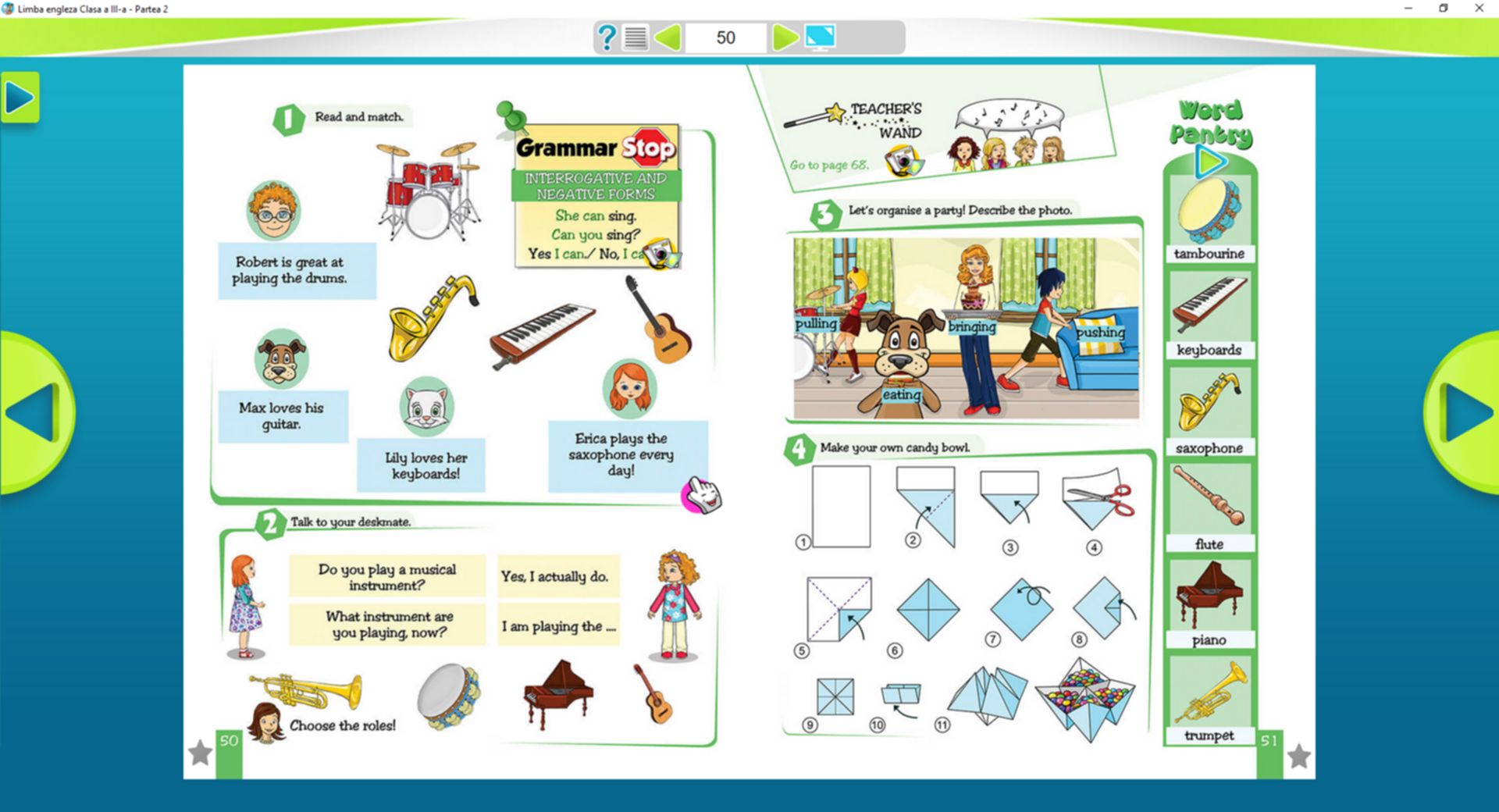 Pachetul educațional este elaborat după noua programă școlară, fiind format dintr-un auxiliar (64 de pagini color) și o aplicație educativă.