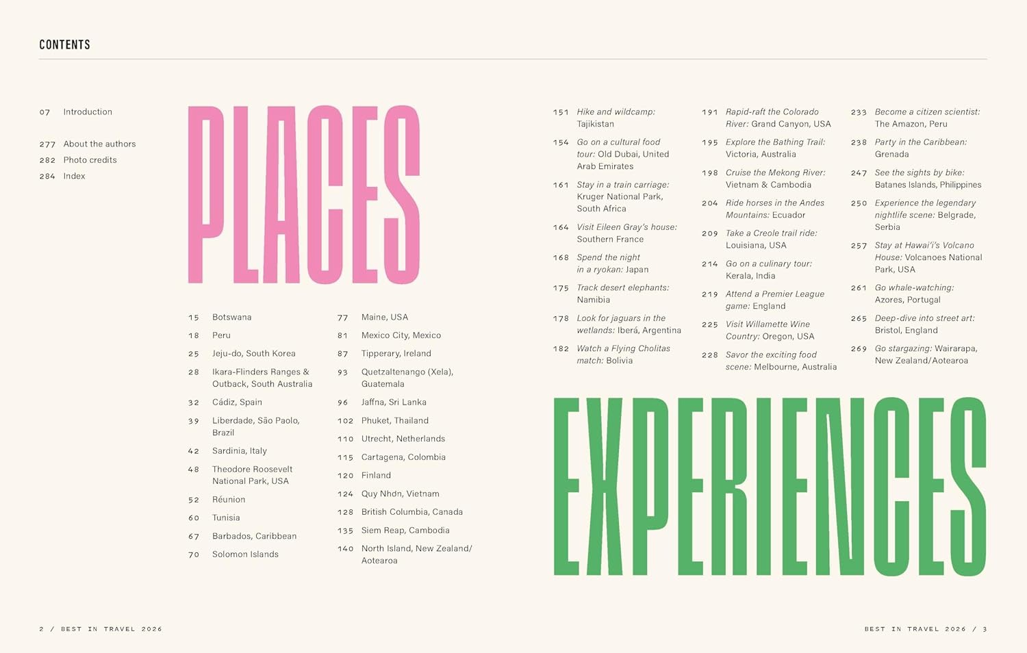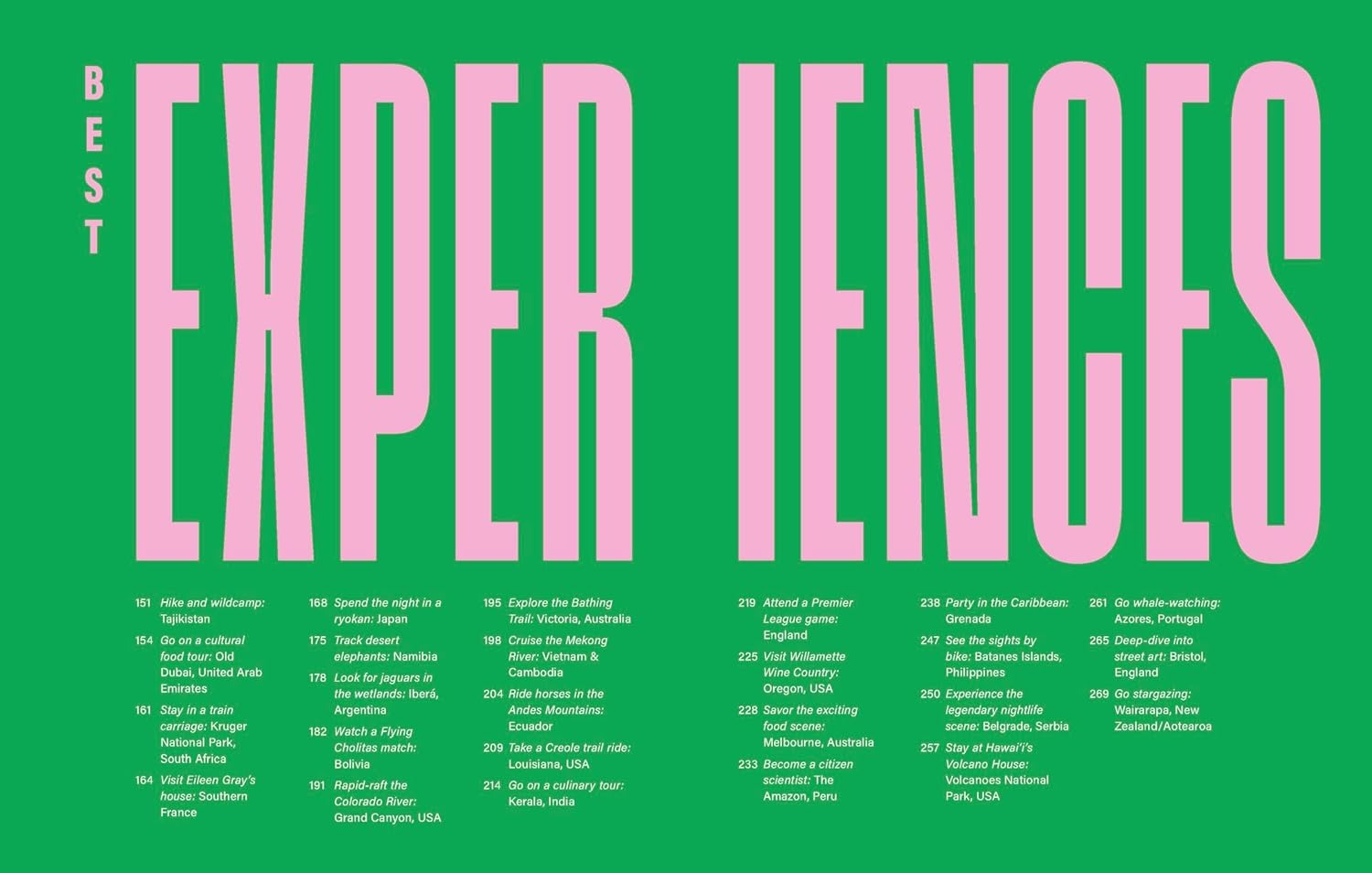 • Brand new top 25 places and top 25 experiences around the world right now as selected by our panel of experts