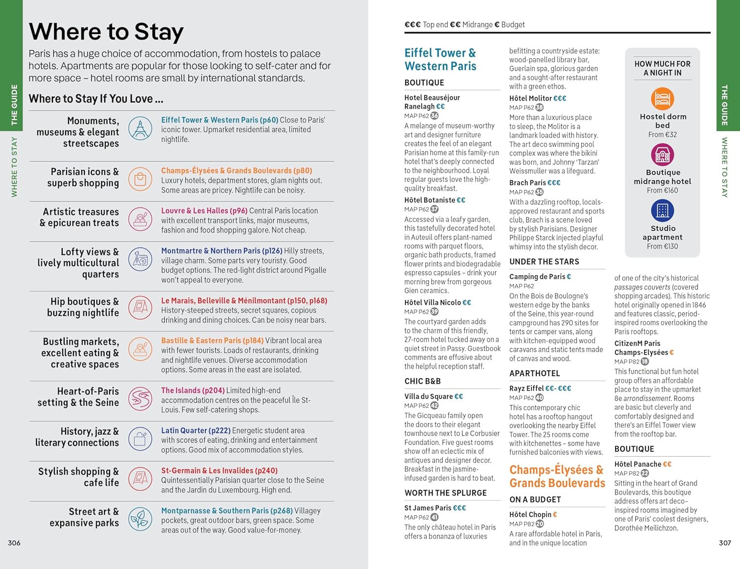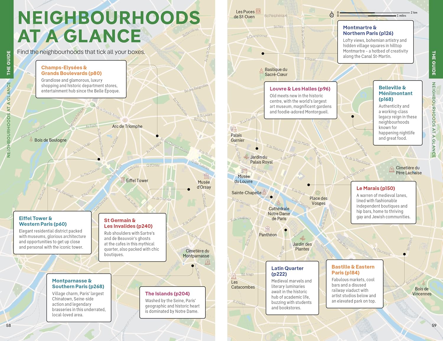 - Covers: Eiffel Tower & Western Paris, Champs-Élysées & Grands Boulevards, Louvre & Les Halles, Montmartre & Northern Paris, Le Marais, Belleville & Ménilmontant, Bastille & Eastern Paris, The Islands, Latin Quarter, St-Germain & Les Invalides, Montparnasse & Southern Paris plus day trips to Versailles, Chartres, Fontainebleau, Auvers-sur-Oise