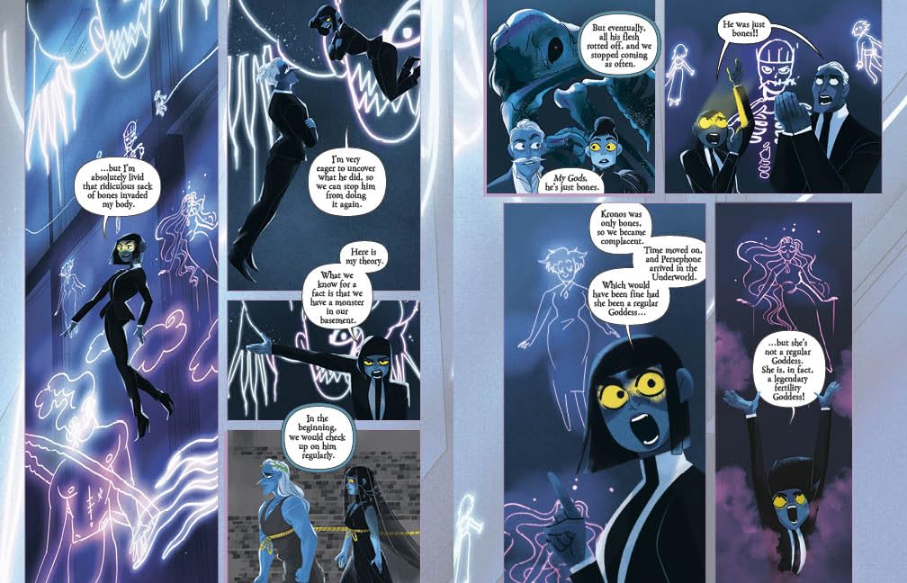 Ignoring the others who try to define their relationship, Hades and Persephone choose to take things at their own pace and focus on rebuilding the Underworld. They begin by investigating how Kronos was first able to escape, and they learn the horrifying truth that he has captured a powerful young god whose abilities help Kronos project his thoughts outside of Tartarus—thoughts he uses to plague Hera’s every waking moment. Though Kronos’s physical form is locked away, Olympus will never be free until they can rescue the child from the furious Titan’s grasp.