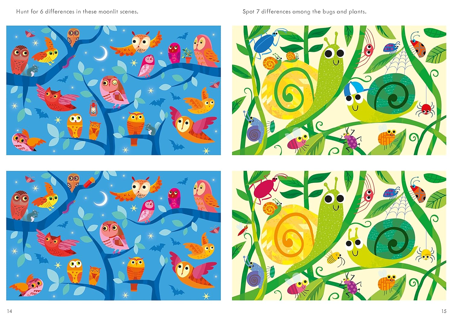 With over 120 pages of activities, this book is perfect for keeping children entertained on holidays, rainy days and journeys. There are four sections: Spot the Difference, Hand Shadows, Mirror Drawing and Stick People to Draw. Spot the differences between adorable animal-themed scenes; bring shadow-animals to life with just your hands, a lamp and a little imagination; finish pictures by drawing the missing half of each one; and learn to draw stick people having fun surfing, fishing, skateboarding and more.