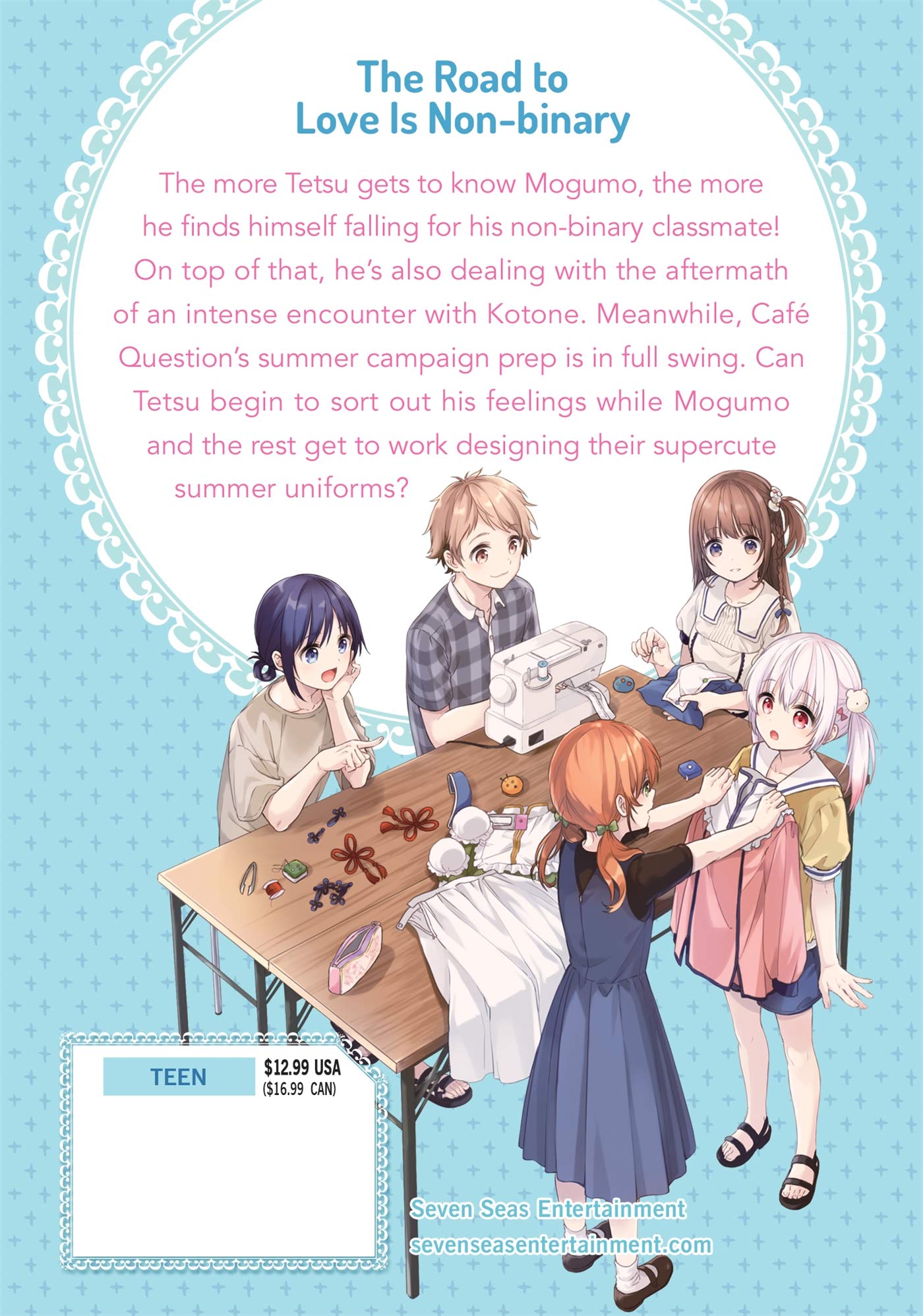 Mogumo is a cute but lonely high school student who just wants a few loving friends. Fellow student Iwaoka Tetsu invites Mogumo to work at his family’s café for “cross-dressing boys,” but he makes an incorrect assumption: Mogumo is non-binary and doesn’t identify as a boy or a girl. However, Mogumo soon finds out that the café is run by LGBT folks of all stripes, all with their own reasons for congregating there. This touching manga explores gender, gender presentation, and sexuality from many different angles, including the ways people are pushed to conform in a world that doesn’t understand them... until the world begins to learn, one person at a time.