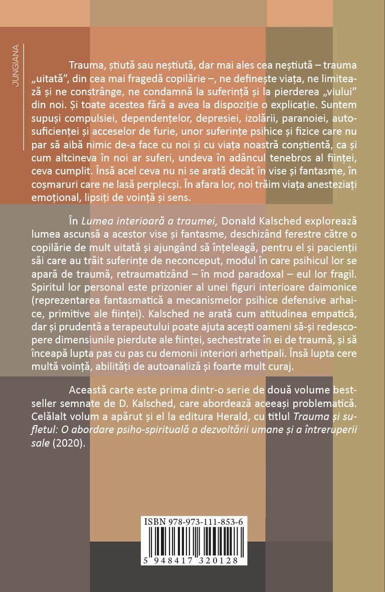 Donald Kalsched exploreaza lumea ascunsa a acestor vise si fantasme, deschizand ferestre catre o copilarie de mult uitata si ajungand sa inteleaga, pentru el si pacientii sai – care au trait suferinte de neconceput si de nesuportat inainte ca eul lor constient sa se fi format – modul in care psihicul lor se apara de trauma, retraumatizand – in mod paradoxal – eul fragil al acestora, prizonier al unei figuri daimonice (reprezentarea onirica a mecanismelor psihice defensive arhaice si primitive ale fiintei). Pacientii care au suferit traume destructurante in primii ani ai vietii sunt cei care ridica cele mai multe rezistente in psihoterapie, iar terapeutii tind de cele mai multe ori sa reactioneze, in contratransfer, negativ la rezistentele lor, ajungandu-se chiar si la ruperea aliantei terapeutice. Atitudinea empatica si hranitoare adoptata de Kalsched este singura care poate ajuta acesti oameni sa-si redescopere dimensiunile pierdute ale fiintei, sechestrate in ei de trauma, si sa inceapa lupta pas cu pas cu demonii interiori arhetipali. Insa lupta cere multa vointa, abilitati de autoanaliza si foarte mult curaj