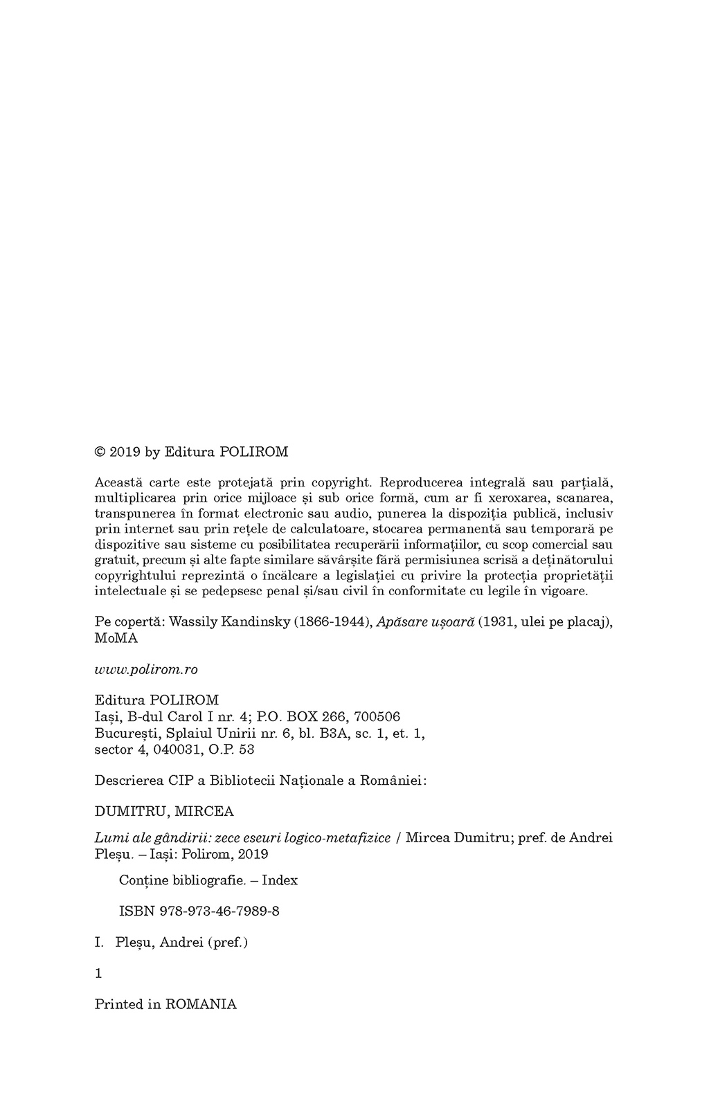 „Mircea Dumitru reprezintă, în România, o parcelă a gîndirii contemporane, mai puțin frecventată de marele public, fie el și interesat de «metafizică». Cititorul... va descoperi voluptăți filosofice noi, rezultate din degustarea rigorii, a construcției logice, a unei interogații despre sens de altă coloratură decît aceea a gîndirii speculative tradiționale.” (Andrei Pleșu)