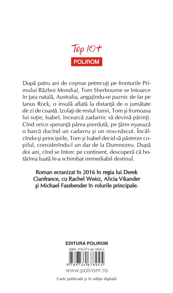 Roman ecranizat în 2016 în regia lui Derek Cianfrance, cu Rachel Weisz, Alicia Vikander şi Michael Fassbender în rolurile principale.