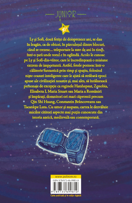 Acolo le cunosc pe Ly și Sofi-din-viitor, care le încredinţează o misiune extrem de importantă. Astfel, fetele pornesc într-o călătorie fantastică prin timp și spaţiu, folosind niște ceasuri inteligente care le ajută să străbată epoci apuse ale civilizaţiei noastre și, mai ales, să întâlnească personaje de excepţie ca reginele Hatshepsut, Zenobia, Elisabeta I, Maria Stuart sau Maria a României și împăraţi, domnitori ori mari căpetenii precum Qin Shi Huang, Constantin Brâncoveanu sau Tacankpe Luta.