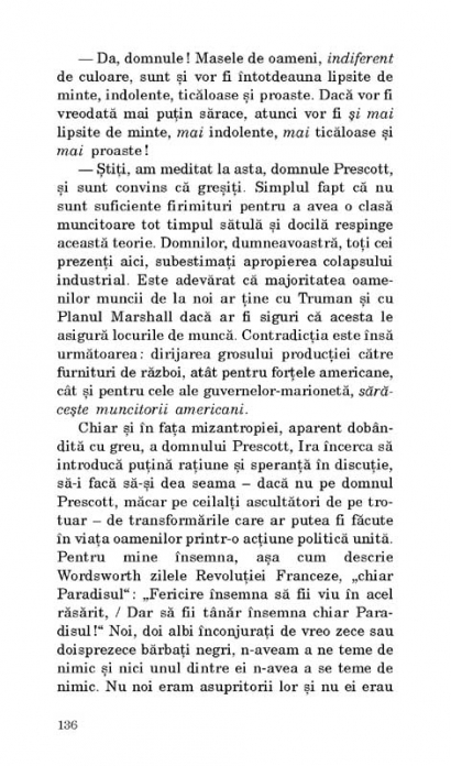 „O carte amara ce reinvie in chip stralucit idealismele si ipocriziile perioadei postbelice.” (Robert Stone)