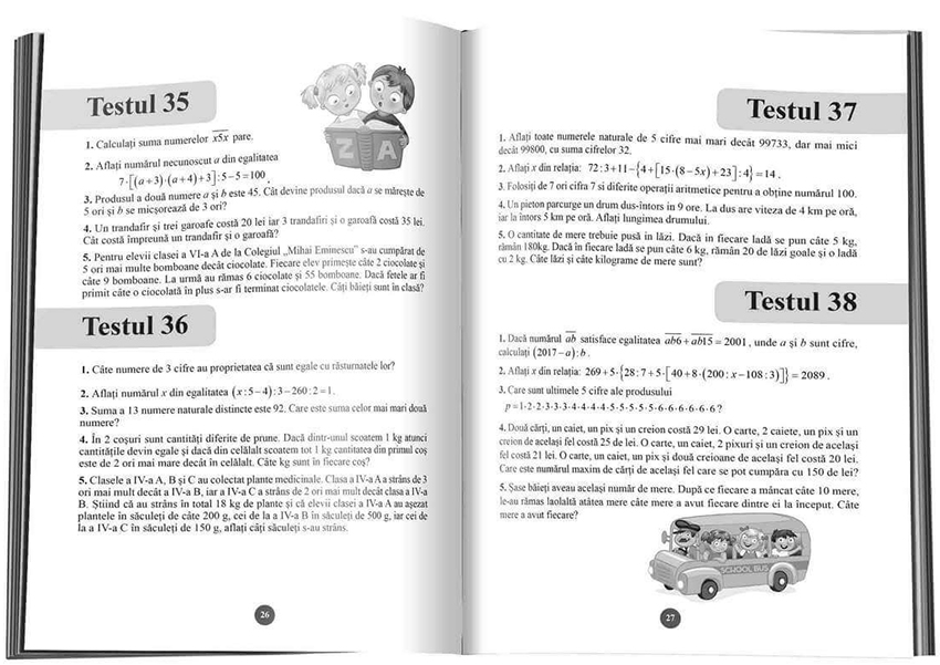 Volumul cuprinde 134 de teste de matematica avand aceeasi structura, concepute pentru pregatirea suplimentara a elevilor preocupati de matematica, precum si pentru pregatirea concursurilor la clasa a IV-a. Fiecare test cuprinde cinci probleme avand grade diferite de dificultate, ordonate de la cele mai simple la cele complexe. La final exista raspunsurile pentru fiecare problema.