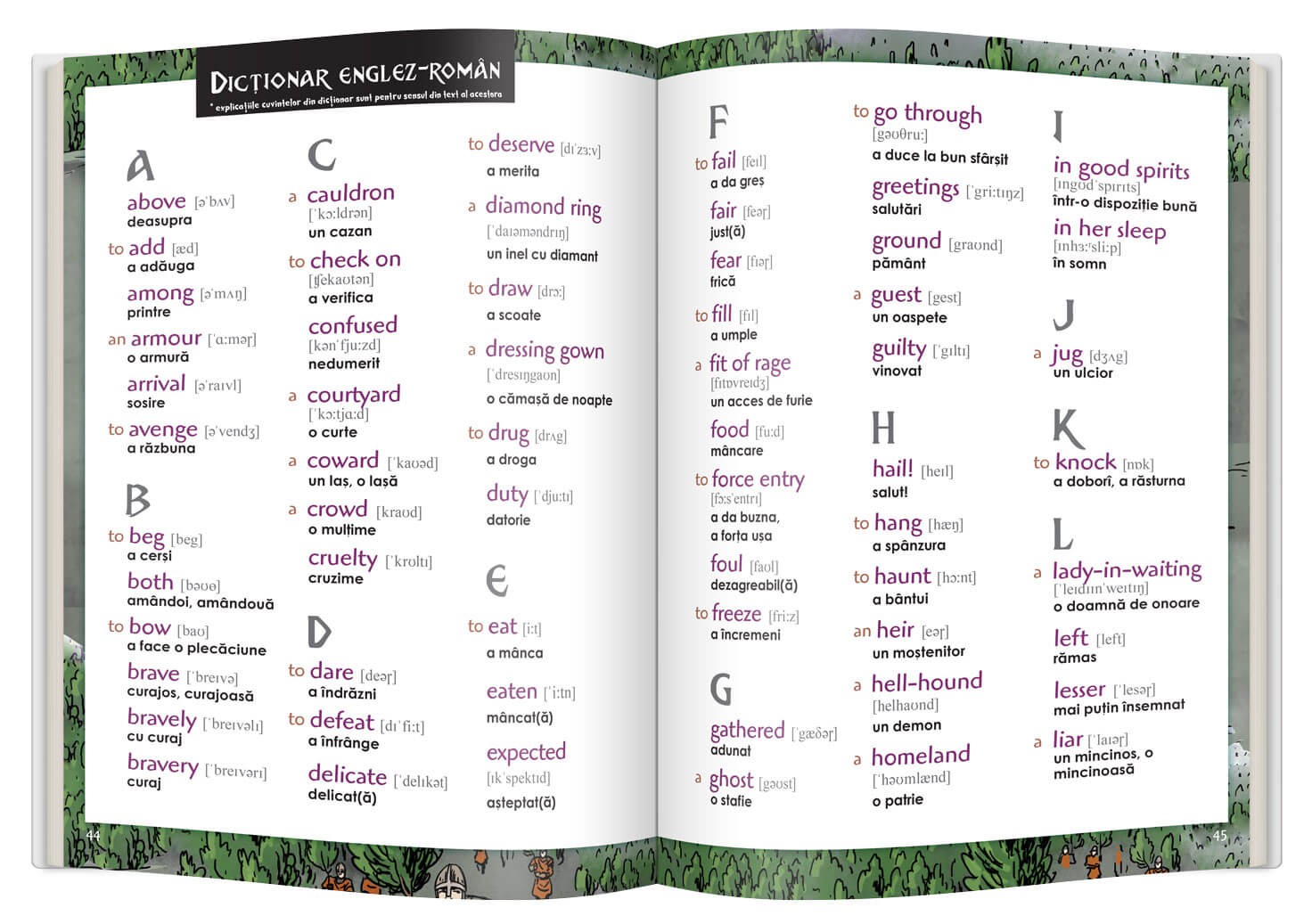 • dicționar englez-român la sfârșitul fiecărui volum, ca să înțelegi mai bine textul.