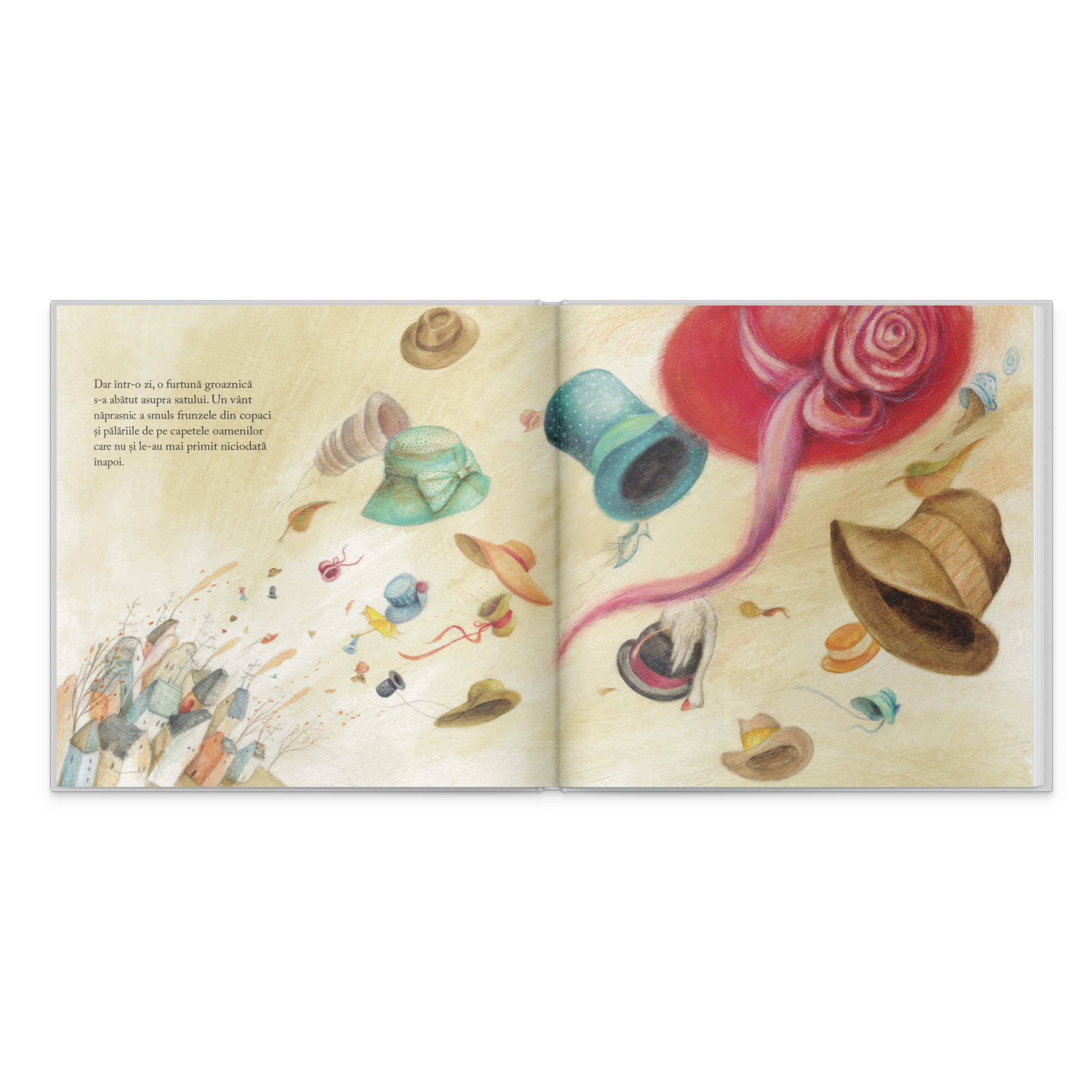 Dar într-o zi, o furtună s-a abătut brusc asupra satului, smulgând frunzele copacilor și pălăriile de pe capetele oamenilor. Când liniștea s-a așternut iar, locuitorii au constatat că au rămas fără pălării și că magazinul, dimpreună cu meșteșugarul lui, dispăruseră. Văzându-se în această situație, oamenii se simțeau dezgoliți și vulnerabili și se întrebau ce să facă…