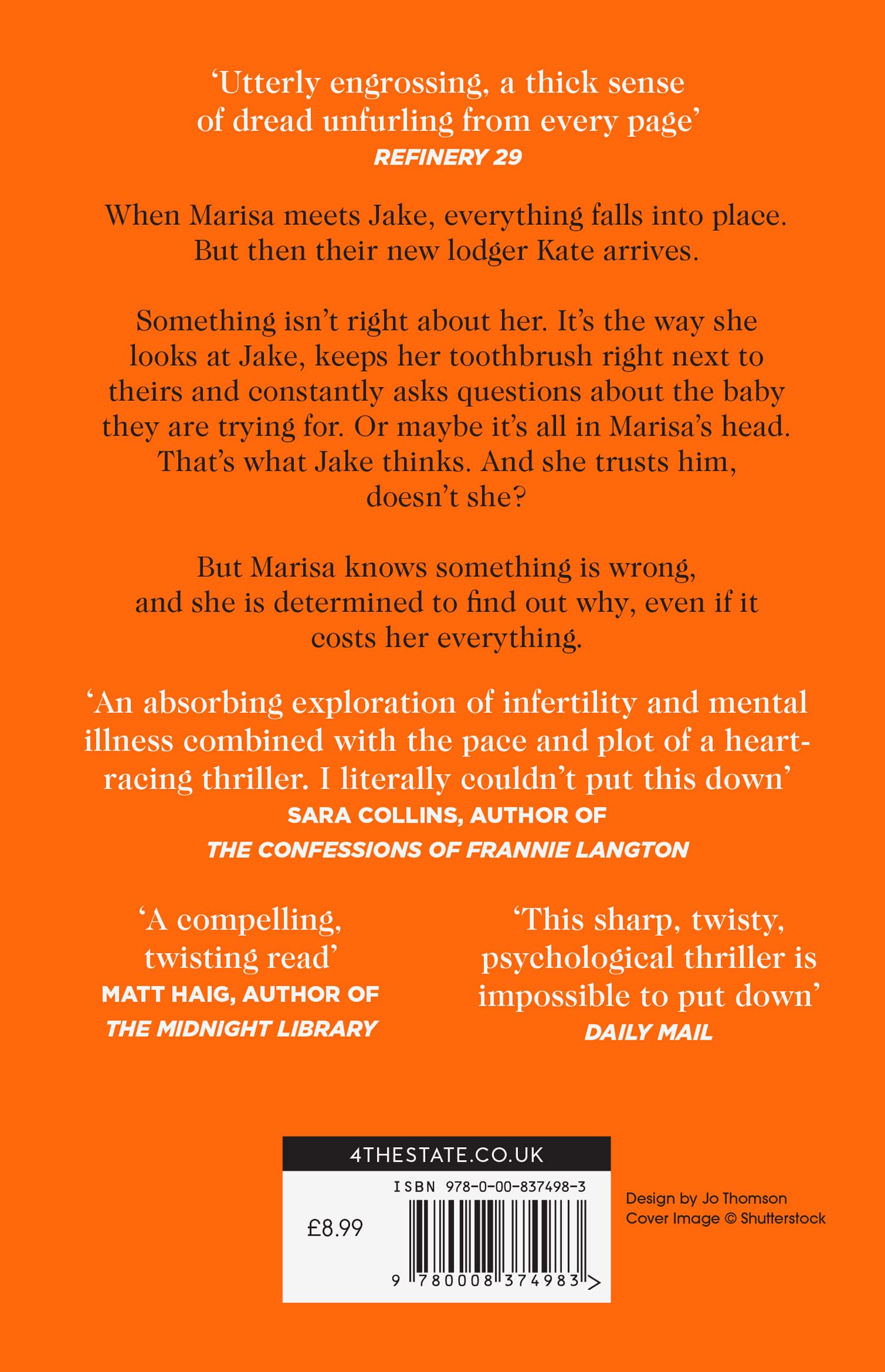 Something isn't right about her. It's the way she looks at Jake, keeps her toothbrush right next to theirs and constantly asks questions about the baby they are trying for. Or maybe it's all in Marisa's head. That's what Jake thinks. And she trusts him, doesn't she?