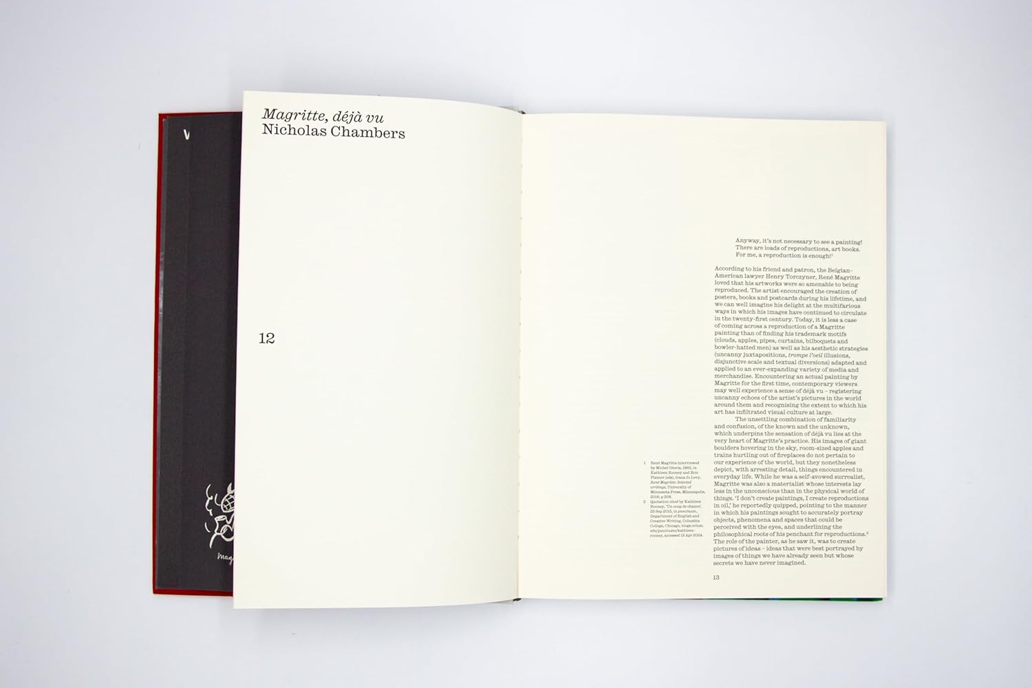 An essay by the curator of Magritte, Nicholas Chambers, leads us through the arc of the exhibition, revealing the artist's extraordinary capacity for innovation and reinvention. Xavier Cannone, an expert on Belgian surrealism, focuses on the artist's milieux during the formative period of the 1920s. Natalie Dupécher, associate curator of modern art at the Menil Collection in Houston, picks up the story in the 1930s and considers the reception and promotion of Magritte's art outside of Europe. And Belgian art historian Julie Wasseige reflects on a key, underlying theme of the artist's practice: his remarkable use of humour. Additionally, an extensive illustrated chronology compiled by Tai Spruyt charts the artist's eventful life and career.