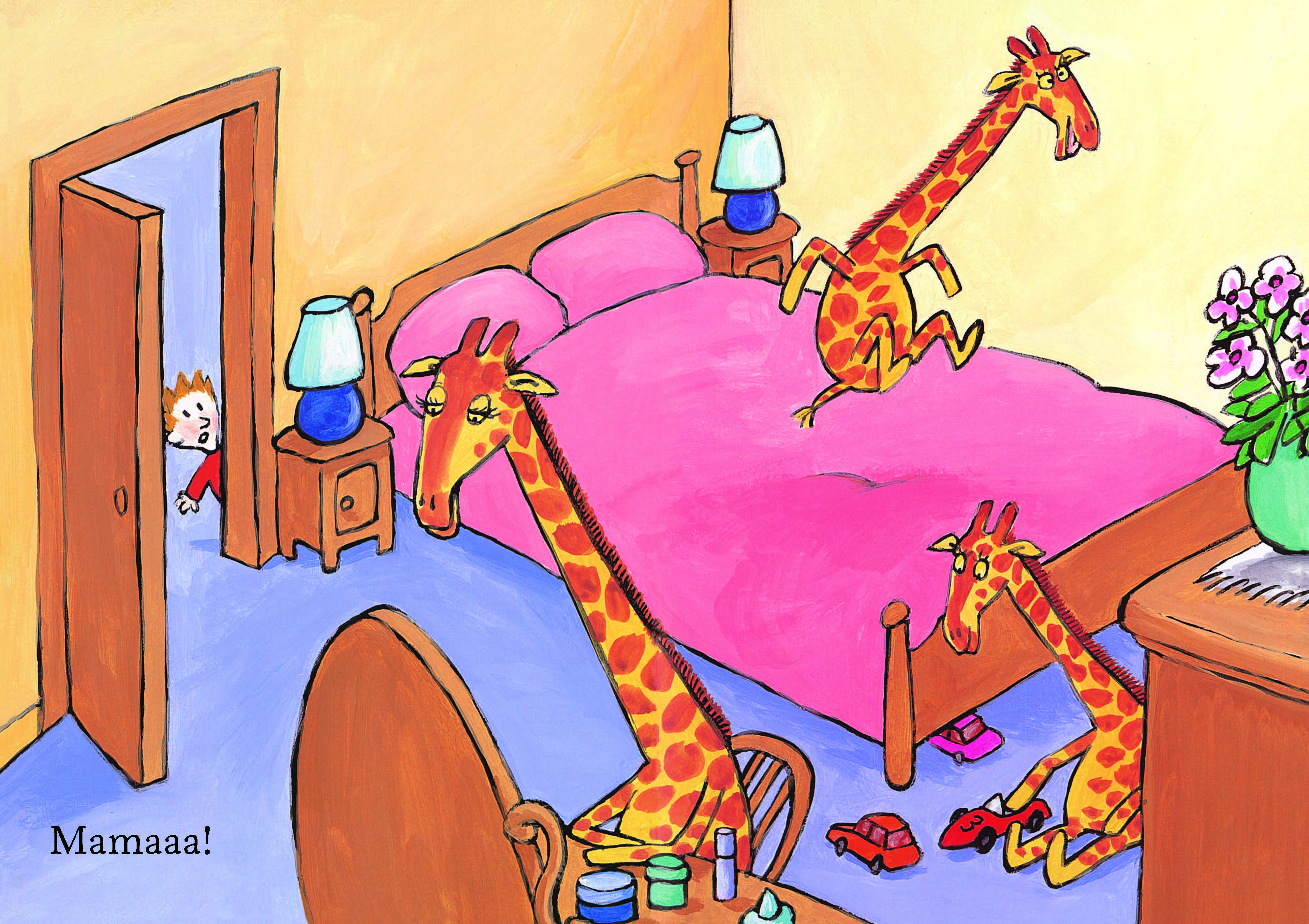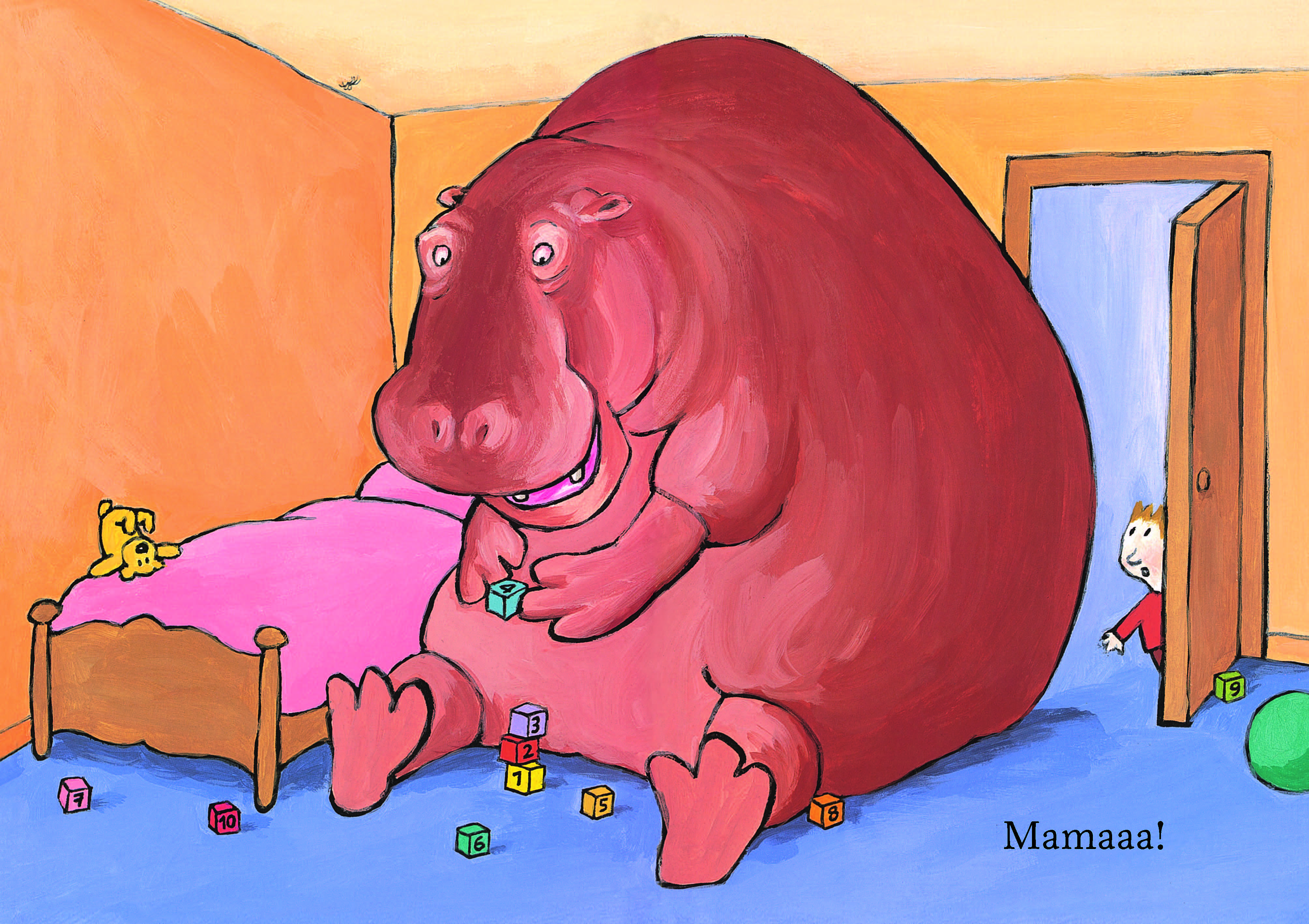 Un băiețel își strigă mama pe fiecare pagină din carte. Deși casa este plină de animale aflate în cele mai neobișnuite situații, lui nu îi este frică nici de maimuțele care se leagănă de pe un dulap pe altul, nici de purcelușii care joacă puzzle, nici de alt animal bizar, ci de un… mic păianjen. Copiii pot număra animalele care au ocupat casa și descoperi cifrele ascunse pe fiecare pagină.